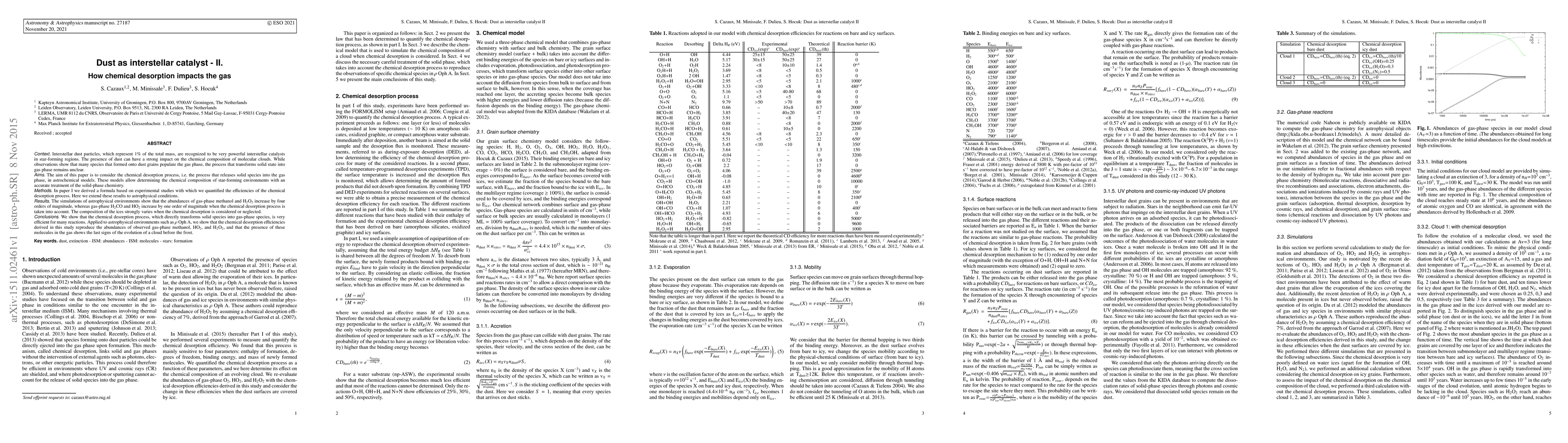 This paper investigates the chemical desorption process, where solid species on interstellar dust grains are released into the gas phase, significantly impacting the chemical composition of star-forming regions. The study finds that this process increases the abundances of methanol, hydrogen peroxide, formaldehyde, and hydroperoxyl radicals in the gas by several orders of magnitude, thereby influencing the evolution of molecular clouds.