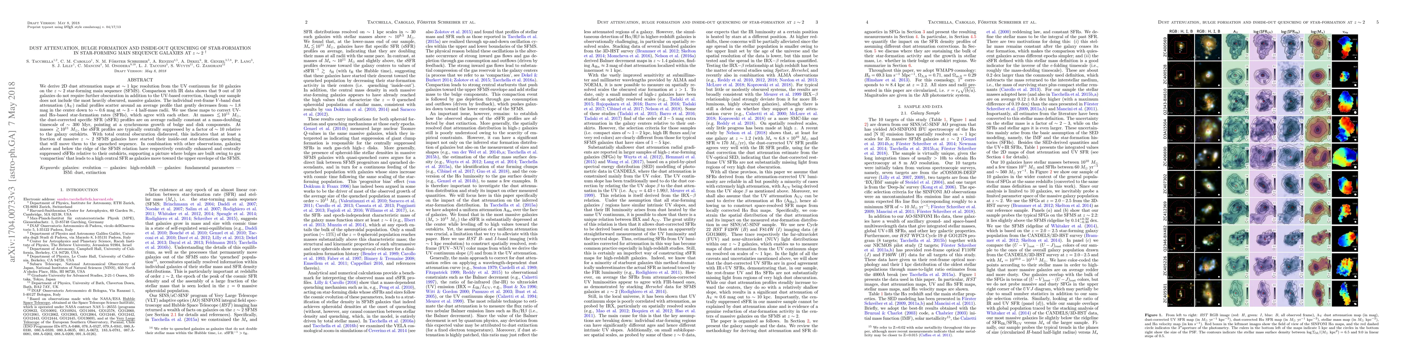 This paper examines dust attenuation in ten z~2 Star-Forming Main Sequence galaxies, revealing that most do not require additional obscuration beyond UV-based correction. It shows that star-formation cessation begins inside-out in more massive galaxies, with central suppression of star-formation rates indicating an early stage of quenching.