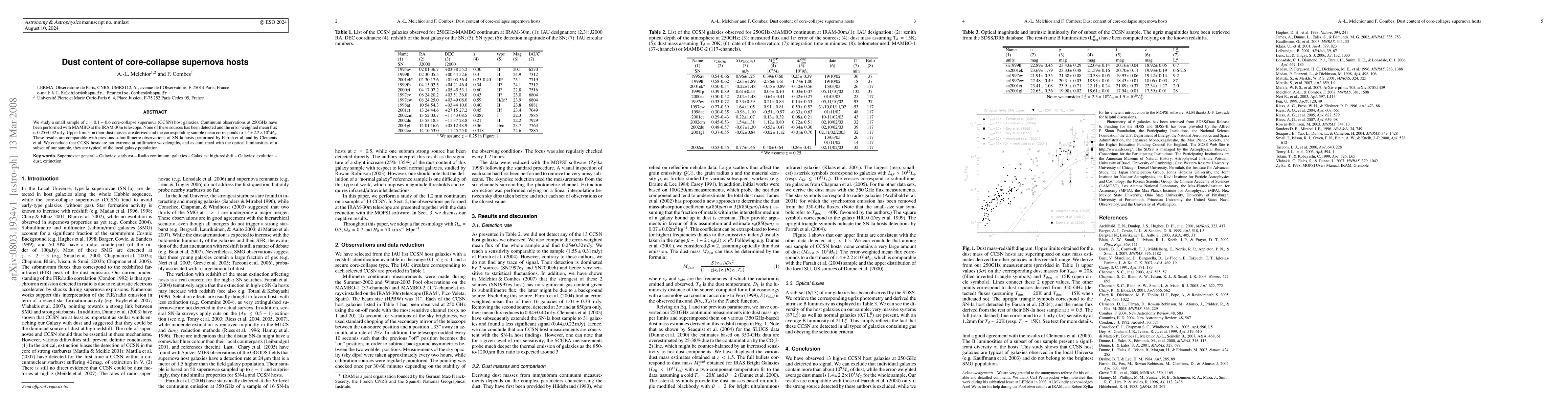 We study a small sample of z=0.1-0.6 core-collapse supernova (CCSN) host galaxies. Continuum observations at 250GHz have been performed with MAMBO at the IRAM-30m telescope. None of these sources has been detected and the error-weighted mean flux is 0.25+/-0.32 mJy. Upper limits on their dust masses are derived and the corresponding sample mean corresponds to 1.4 +/- 2.2 x 10^8 Msol. These results are comparable with previous submillimetre observations of SN-Ia hosts performed by Farrah et al. and by Clements et al. We conclude that CCSN hosts are not extreme at millimetre wavelengths, and as confirmed with the optical luminosities of a subset of our sample, they are typical of the local galaxy population.