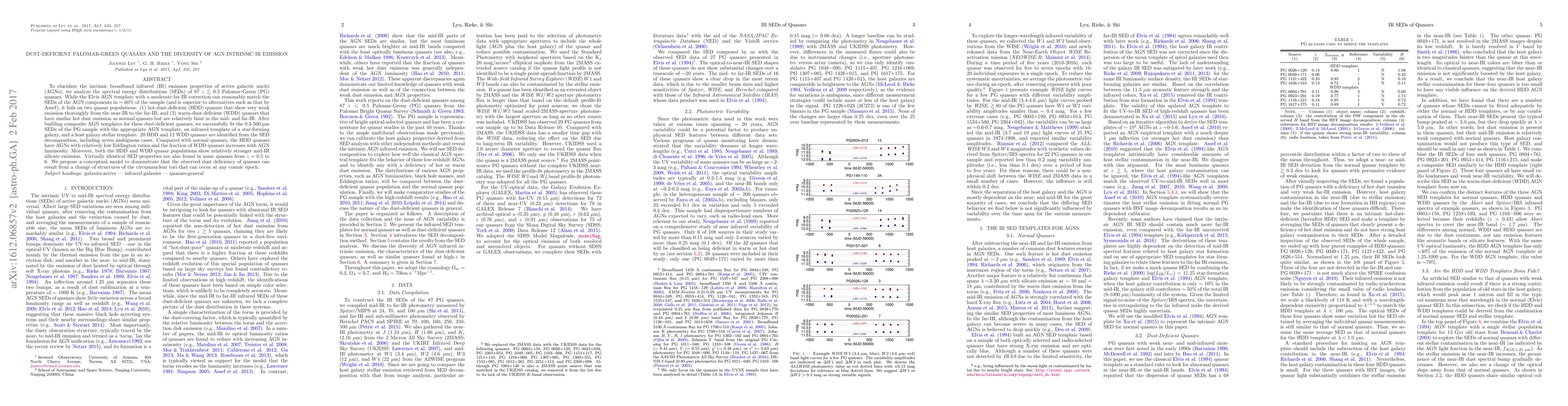 The paper presents a comprehensive SED analysis of Palomar-Green quasars, identifying and characterizing dust-deficient quasar populations, and proposes a conceptual model for dust deficiency in AGNs.