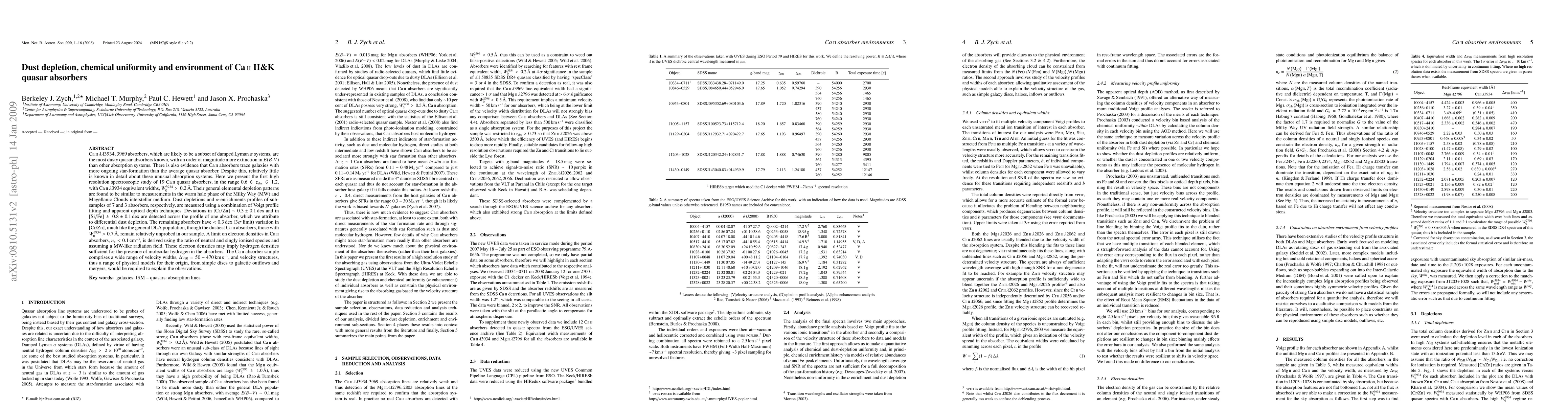 CaII 3934,3969 absorbers, which are likely to be a subset of damped Lyman alpha systems, are the most dusty quasar absorbers known, with an order of magnitude more extinction in E(B-V) than other absorption systems. There is also evidence that CaII absorbers trace galaxies with more ongoing star-formation than the average quasar absorber. Despite this, relatively little is known in detail about these unusual absorption systems. Here we present the first high resolution spectroscopic study of 19 CaII quasar absorbers, in the range 0.6<= z_abs<=1.2, with W3934>=0.2A. Their general depletion patterns are similar to measurements in the warm halo phase of the Milky Way and Magellanic Clouds ISM. Dust depletions and alpha-enrichments profiles of sub-samples of 7 and 3 absorbers, respectively, are measured using a combination of Voigt profile fitting and apparent optical depth techniques. Deviations in [Cr/Zn]~0.3+-0.1dex and in [Si/Fe]>~0.8+-0.1dex are detected across the profile of one absorber, which we attribute to differential dust depletion. The remaining absorbers have <0.3dex (3sigma limit) variation in [Cr/Zn], much like the general DLA population, though the dustiest CaII absorbers remain relatively unprobed in our sample. A limit on electron densities in CaII absorbers, n_e<0.1cm^-3, is derived using the ratio of neutral and singly ionised species, assuming a MW-like radiation field. These electron densities may imply hydrogen densities sufficient for the presence of molecular hydrogen in the absorbers. The CaII absorber sample comprises a wide range of velocity widths, v_90=50-470km/s, and velocity structures, thus a range of physical models for their origin, from simple discs to galactic outflows and mergers, would be required to explain the observations.