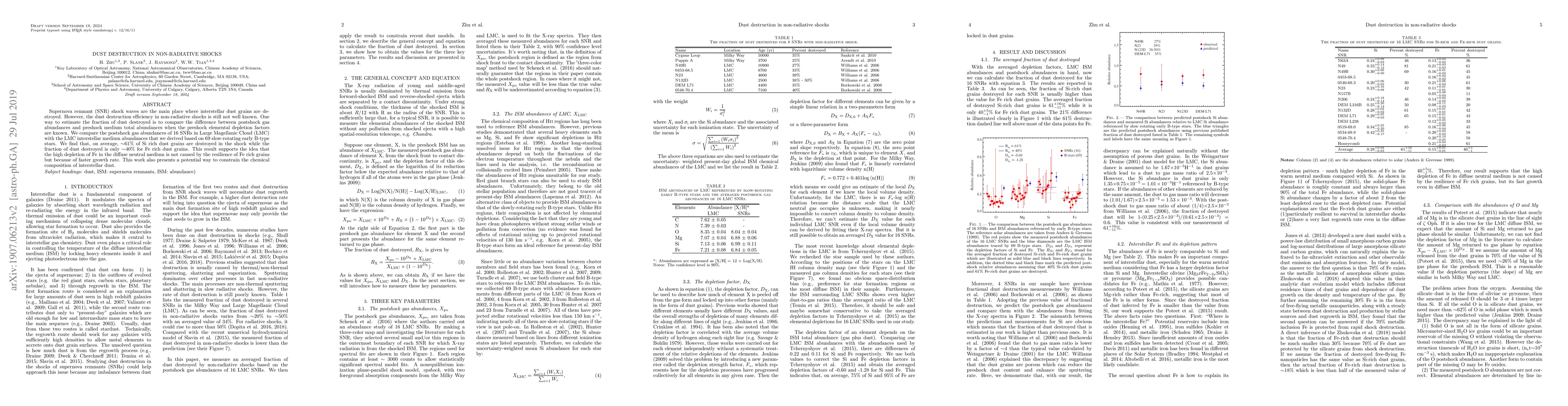 Research on supernova remnants reveals that 61% of Si-rich dust grains and 40% of Fe-rich dust grains are destroyed in shocks, supporting the idea that high iron depletion is due to rapid growth rates rather than grain resilience.
