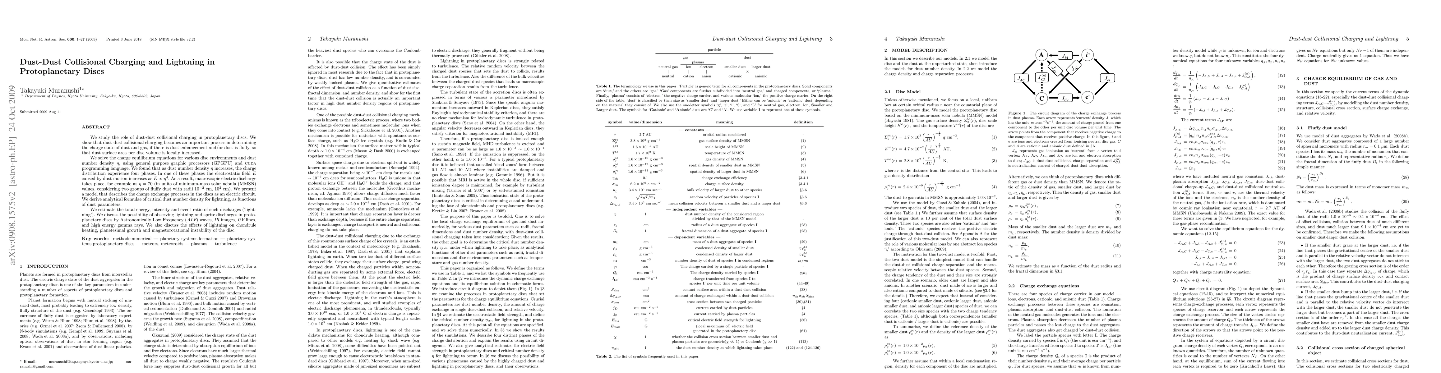 This paper investigates dust-dust collisional charging in protoplanetary discs, finding that enhanced dust density or fluffy dust increases its significance in determining charge states. The study reveals four phases in charge distribution as dust density increases, leading to macroscopic electric discharges, or "lightning," at high densities. The research proposes a model for charge exchange in discs and estimates the energy and frequency of these discharges, discussing potential observational signatures and their impact on chondrule heating and planetesimal growth.