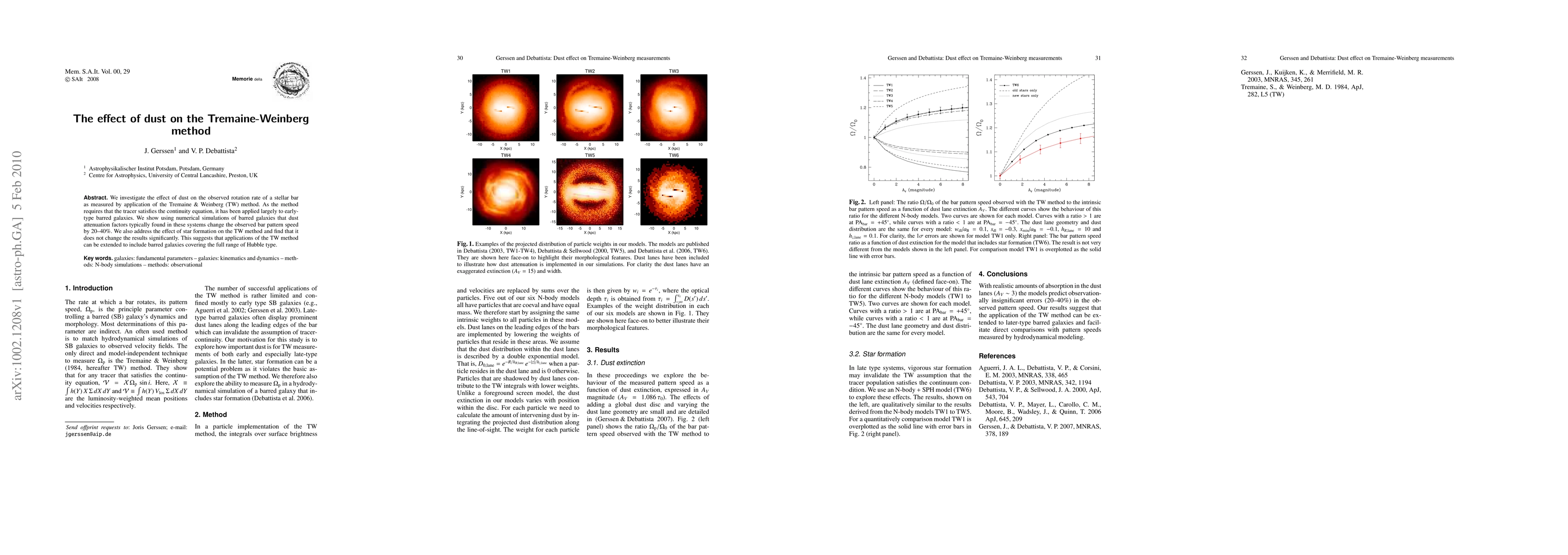 We investigate the effect of dust on the observed rotation rate of a stellar bar as measured by application of the Tremaine & Weinberg (TW) method. As the method requires that the tracer satisfies the continuity equation, it has been applied largely to early-type barred galaxies. We show using numerical simulations of barred galaxies that dust attenuation factors typically found in these systems change the observed bar pattern speed by 20-40%. We also address the effect of star formation on the TW method and find that it does not change the results significantly. This suggests that applications of the TW method can be extended to include barred galaxies covering the full range of Hubble type.