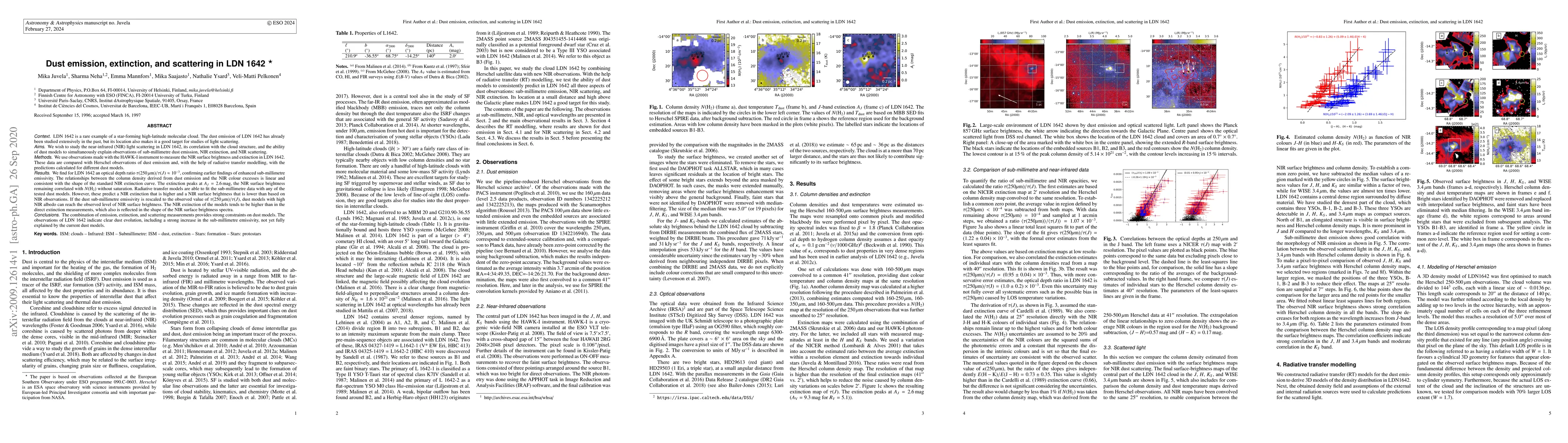 We study the near-infrared (NIR) scattering in LDN 1642, its correlation with the cloud structure, and the ability of dust models to simultaneously explain sub-millimetre emission, NIR extinction, and NIR scattering. We use observations from the HAWK-I instrument to measure the NIR surface brightness and extinction. These are compared with Herschel data on dust emission and, with radiative transfer modelling, with predictions calculated for different dust models. We find an optical depth ratio $\tau(250\,\mu{\rm m})/\tau(J)\approx 10^{-3}$, confirming earlier findings of high sub-millimetre emissivity. The relationships between the column density derived from dust emission and the NIR colour excesses is linear and consistent with the standard NIR extinction curve. The extinction peaks at $A_J=2.6\,$mag, the NIR surface brightness remaining correlated with $N({\rm H}_2)$ without saturation. Radiative transfer models can fit the sub-millimetre data with any of the tested dust models. However, these predict a NIR extinction that is higher and a NIR surface brightness that is lower than in observations. If the dust sub-millimetre emissivity is rescaled to the observed value of $\tau(250\,\mu{\rm m})/\tau(J)$, dust models with high NIR albedo can reach the observed level of NIR surface brightness. The NIR extinction of the models tends to be higher than directly measured, which is reflected in the shape of the NIR surface brightness spectra. The combination of emission, extinction, and scattering measurements provides strong constraints on dust models. The observations of LDN 1642 indicate clear dust evolution, including a strong increase in the sub-millimetre emissivity, not yet fully explained by the current dust models.