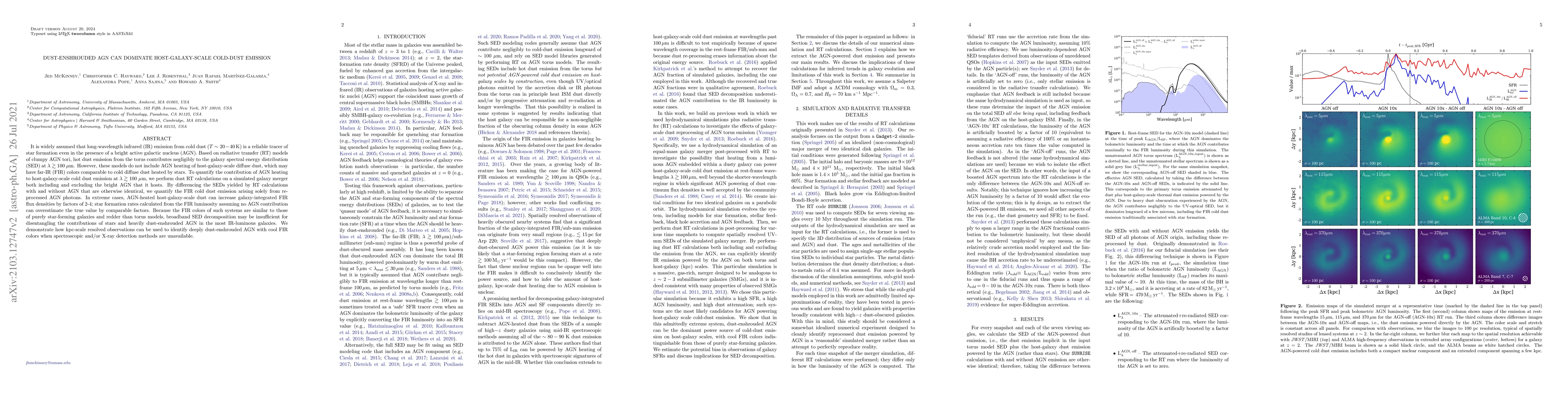 The paper presents a novel approach to quantify AGN heating of host-galaxy-scale cold dust using dust radiative transfer calculations on simulated galaxy mergers, demonstrating the significant impact AGN can have on FIR emission and SFR estimates.