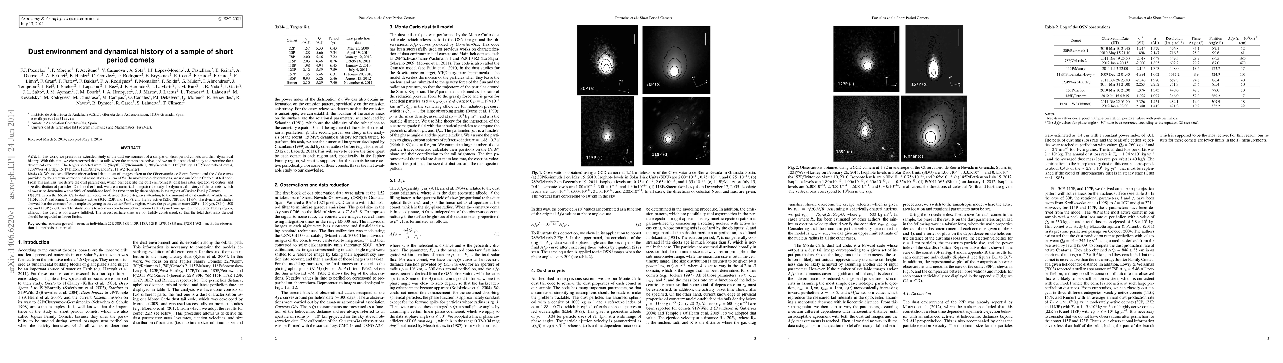 This study analyzed dust environments and dynamical histories of 8 short-period comets, finding that some are highly active, while others are less active, and that their activity may be linked to time spent in the Jupiter Family region.