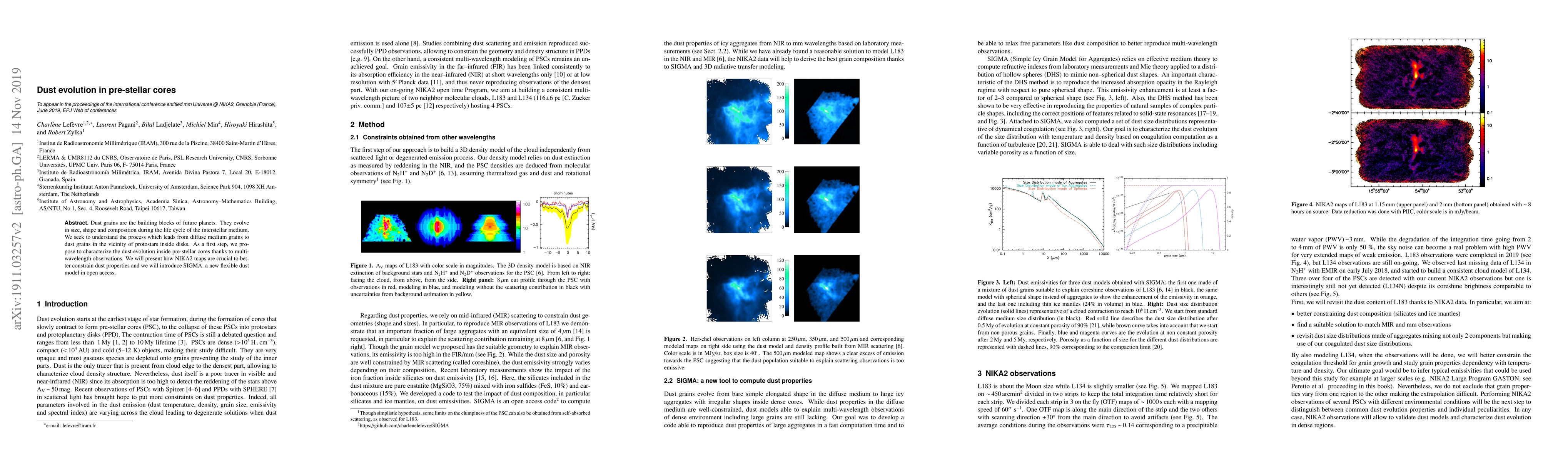 Researchers aim to understand how dust grains form in pre-stellar cores using multi-wavelength observations, with a focus on improving dust models like SIGMA to better constrain properties.