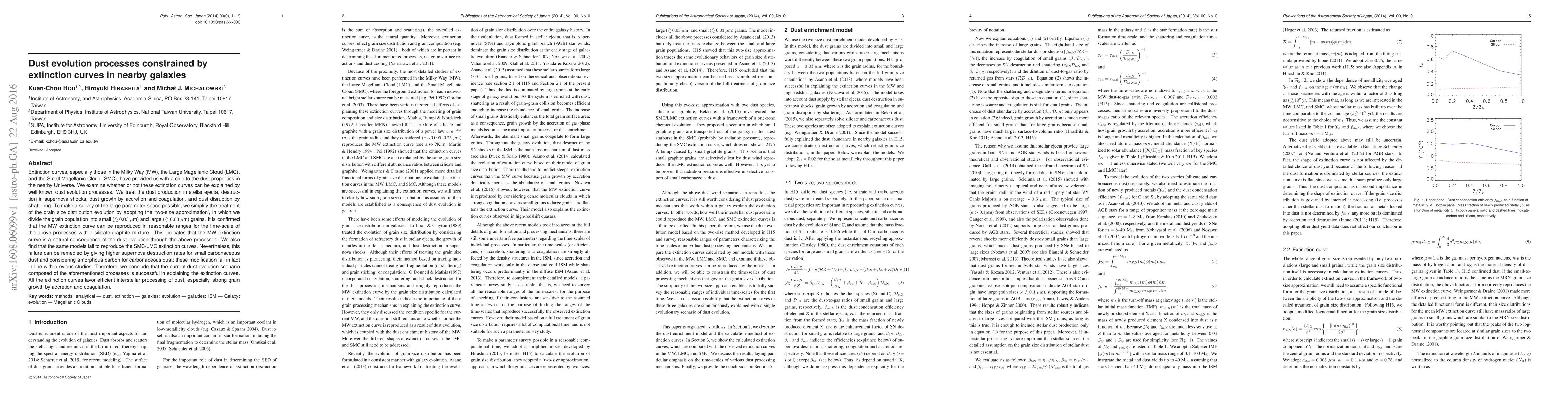 This paper investigates how extinction curves in nearby galaxies like the Milky Way, Large Magellanic Cloud, and Small Magellanic Cloud can be explained by dust evolution processes. It finds that the Milky Way's curve aligns with a silicate-graphite mixture model, but modifications are needed for the LMC and SMC curves, suggesting efficient interstellar dust processing and grain growth.