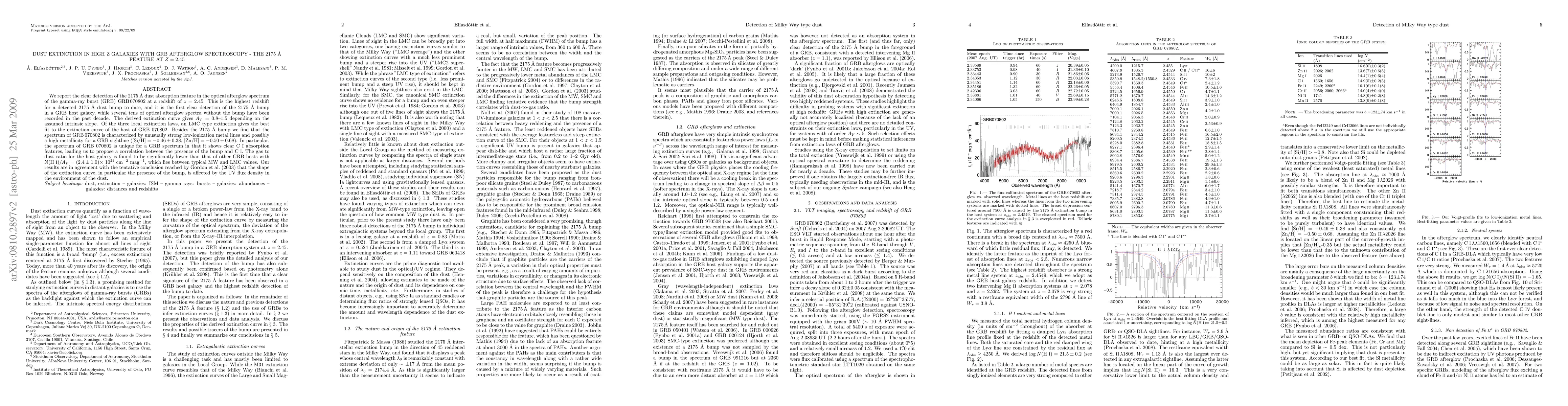 We report the clear detection of the 2175A dust absorption feature in the optical afterglow spectrum of the gamma-ray burst (GRB) GRB070802 at a redshift of z=2.45. This is the highest redshift for a detected 2175A dust bump to date, and it is the first clear detection of the 2175A bump in a GRB host galaxy, while several tens of optical afterglow spectra without the bump have been recorded in the past decade. The derived extinction curve gives A_V=0.8-1.5 depending on the assumed intrinsic slope. Of the three local extinction laws, an LMC type extinction gives the best fit to the extinction curve of the host of GRB070802. Besides the 2175A bump we find that the spectrum of GRB070802 is characterized by unusually strong low-ionization metal lines and possibly a high metallicity for a GRB sightline ([Si/H]=-0.46+/-0.38, [Zn/H]=-0.50+/-0.68). In particular, the spectrum of GRB070802 is unique for a GRB spectrum in that it shows clear CI absorption features, leading us to propose a correlation between the presence of the bump and CI. The gas to dust ratio for the host galaxy is found to be significantly lower than that of other GRB hosts with N(HI)/A_V=(2.4+/-1.0)x10^21 cm^-2 mag^-1, which lies between typical MW and LMC values. Our results are in agreement with the tentative conclusion reached by Gordon et al. 2003 that the shape of the extinction curve, in particular the presence of the bump, is affected by the UV flux density in the environment of the dust.