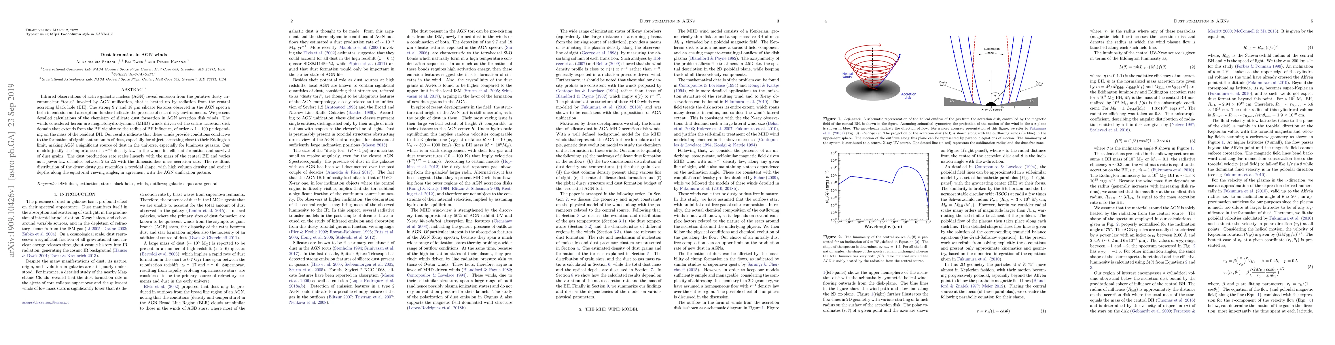 This paper explores the formation of silicate dust in active galactic nucleus (AGN) accretion disk winds, showing that these winds facilitate significant dust production, especially for high accretion rate objects. The dust distribution conforms to a toroidal shape, supporting the AGN unification model.