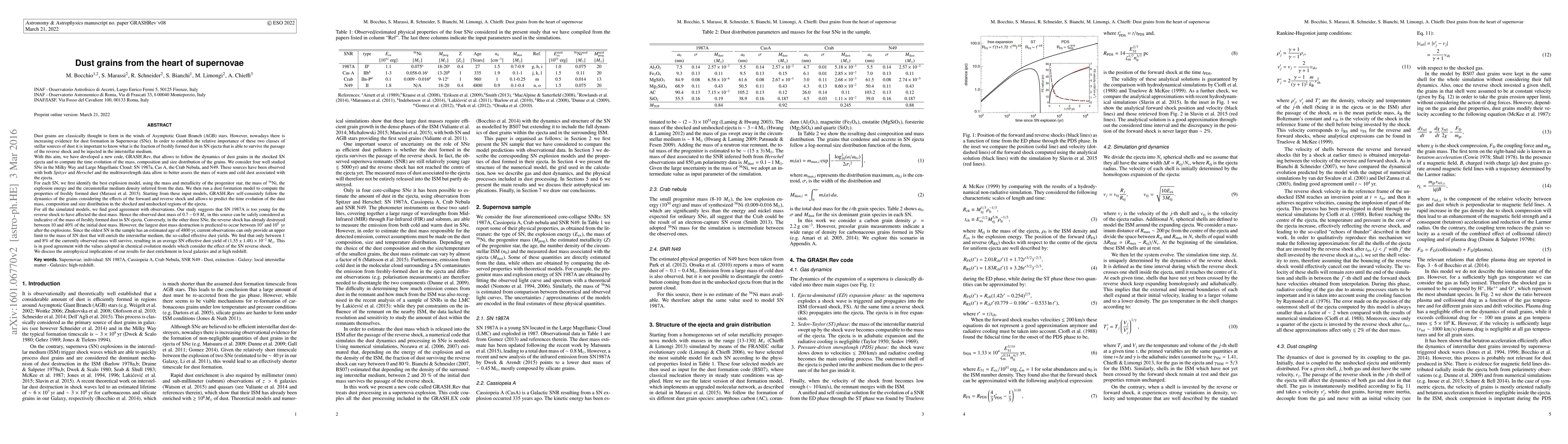 Dust grains are classically thought to form in the winds of AGB stars. However, nowadays there is increasing evidence for dust formation in SNe. In order to establish the relative importance of these two classes of stellar sources of dust it is important to know what is the fraction of freshly formed dust in SN ejecta that is able to survive the passage of the reverse shock and be injected in the interstellar medium. With this aim, we have developed a new code, GRASH_Rev, that allows to follow the dynamics of dust grains in the shocked SN ejecta and to compute the time evolution of the mass, composition and size distribution of the grains. We consider four well studied SNe in the Milky Way and LMC: SN 1987a, Cas A, the Crab Nebula, and N49. For all the simulated models, we find good agreement with observations. Our study suggests that SN 1987A is too young for the reverse shock to have affected the dust mass. Conversely, in the other three SNe, the reverse shock has already destroyed between 10 and 40% of the initial dust mass. However, the largest dust mass destruction is predicted to occur between 10^3 and 10^5 yr after the explosions. Since the oldest SN in the sample has an estimated age of 4800 yr, current observations can only provide an upper limit to the mass of SN dust that will enrich the interstellar medium, the so-called effective dust yields. We find that only between 1 and 8% of the currently observed mass will survive. This is in good agreement with the values adopted in chemical evolution models which consider the effect of the SN reverse shock. We discuss the astrophysical implications of our results for dust enrichment in local galaxies and at high redshift.