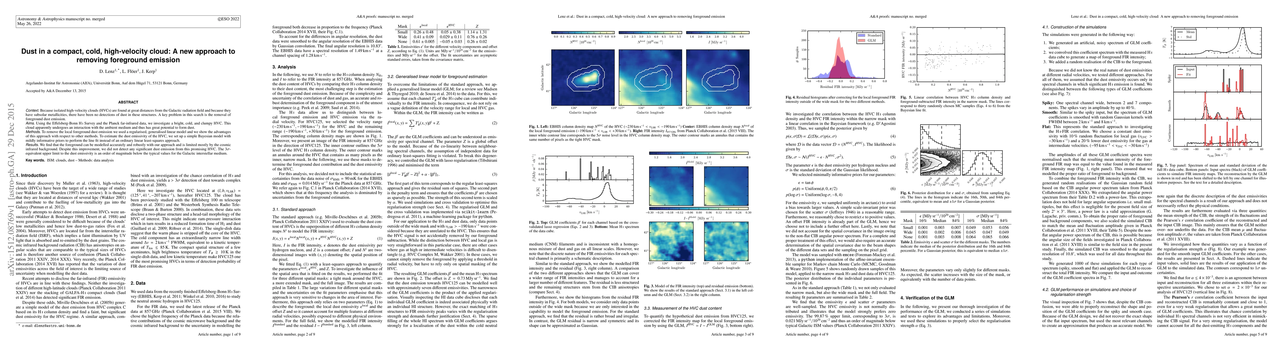 This study employs advanced methods to remove foreground dust emission and investigates a cold, high-velocity cloud for potential dust formation, finding no significant dust despite its promising characteristics. The regularised, generalised linear model and Bayesian approach used for foreground removal show advantages over traditional methods.