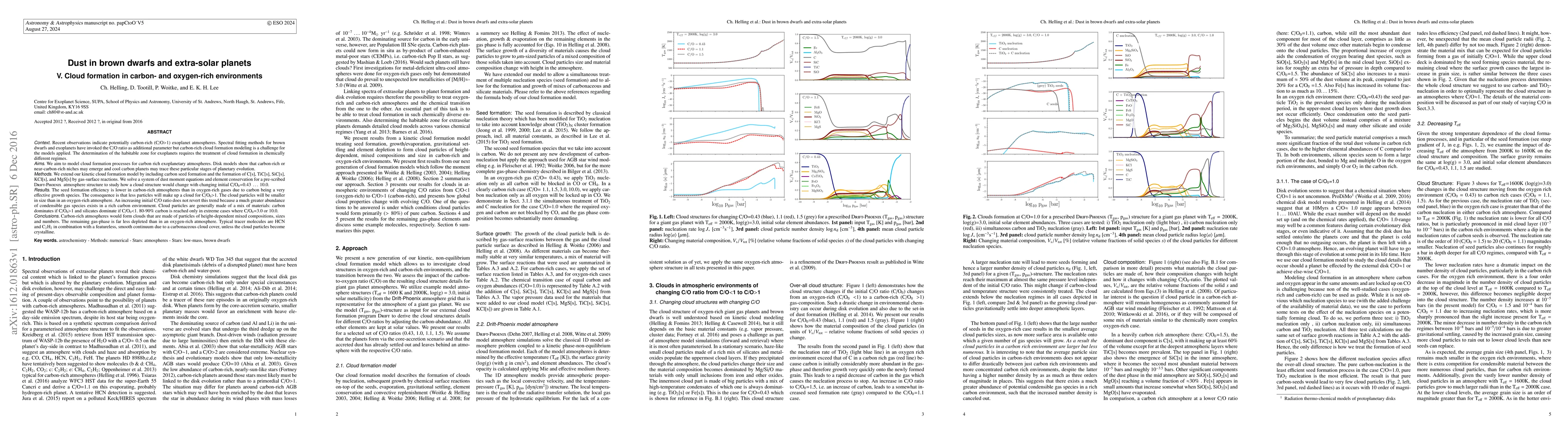 This paper investigates carbon-rich atmospheres in brown dwarfs and exoplanets, focusing on cloud formation modeling. It finds that carbon-rich clouds form smaller particles and mixed compositions compared to oxygen-rich clouds, with carbon dominating in extreme cases. The study extends kinetic cloud formation models to include carbon seed formation and various carbon-based compounds.