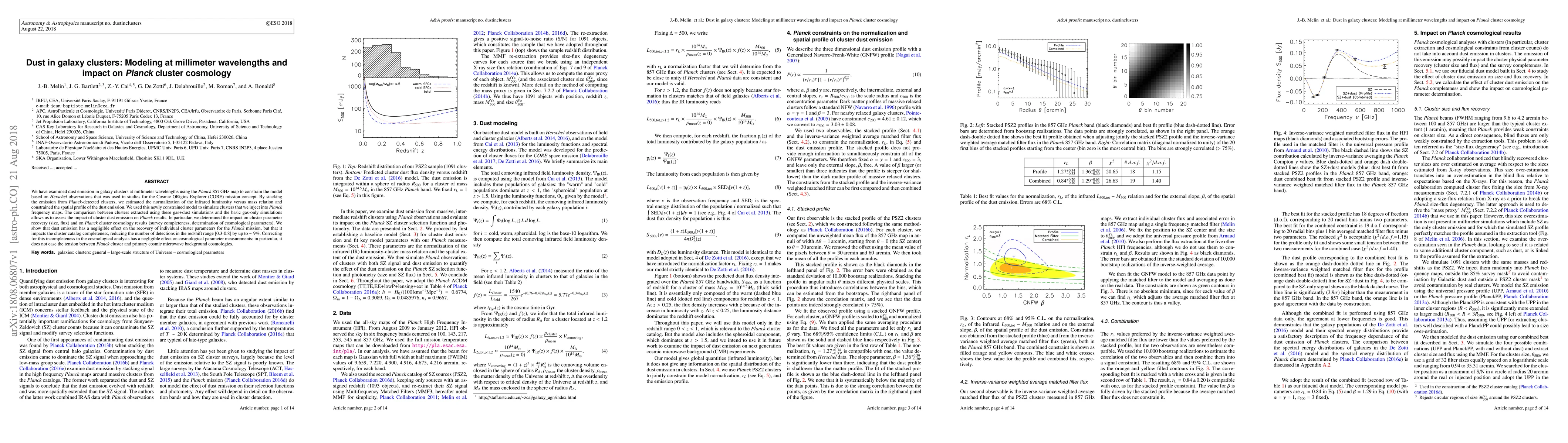 We have examined dust emission in galaxy clusters at millimeter wavelengths using the Planck $857 \, {\rm GHz}$ map to constrain the model based on Herschel observations that was used in studies for the Cosmic ORigins Explorer (CORE) mission concept. By stacking the emission from Planck-detected clusters, we estimated the normalization of the infrared luminosity versus mass relation and constrained the spatial profile of the dust emission. We used this newly constrained model to simulate clusters that we inject into Planck frequency maps. The comparison between clusters extracted using these gas+dust simulations and the basic gas-only simulations allows us to assess the impact of cluster dust emission on Planck results. In particular, we determined the impact on cluster parameter recovery (size, flux) and on Planck cluster cosmology results (survey completeness, determination of cosmological parameters). We show that dust emission has a negligible effect on the recovery of individual cluster parameters for the Planck mission, but that it impacts the cluster catalog completeness, reducing the number of detections in the redshift range [0.3-0.8] by up to $\sim 9\%$. Correcting for this incompleteness in the cosmological analysis has a negligible effect on cosmological parameter measurements: in particular, it does not ease the tension between Planck cluster and primary cosmic microwave background cosmologies.