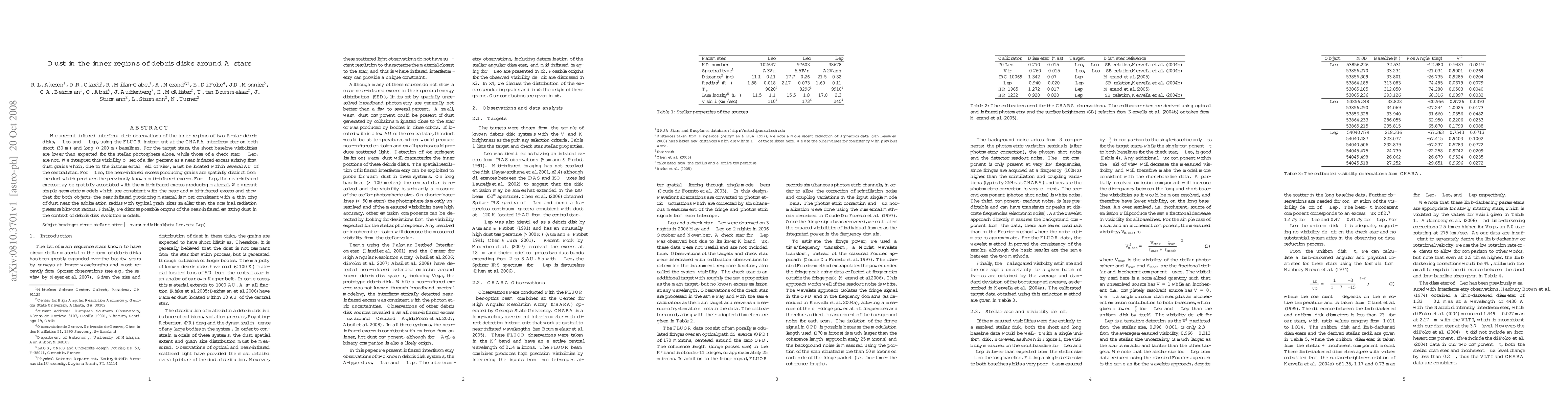 We present infrared interferometric observations of the inner regions of two A-star debris disks, beta Leo and zeta Lep, using the FLUOR instrument at the CHARA interferometer on both short (30 m) and long (>200 m) baselines. For the target stars, the short baseline visibilities are lower than expected for the stellar photosphere alone, while those of a check star, delta Leo, are not. We interpret this visibility offset of a few percent as a near-infrared excess arising from dust grains which, due to the instrumental field of view, must be located within several AU of the central star. For beta Leo, the near-infrared excess producing grains are spatially distinct from the dust which produces the previously known mid-infrared excess. For zeta Lep, the near-infrared excess may be spatially associated with the mid-infrared excess producing material. We present simple geometric models which are consistent with the near and mid-infrared excess and show that for both objects, the near-infrared producing material is most consistent with a thin ring of dust near the sublimation radius with typical grain sizes smaller than the nominal radiation pressure blowout radius. Finally, we discuss possible origins of the near-infrared emitting dust in the context of debris disk evolution models.