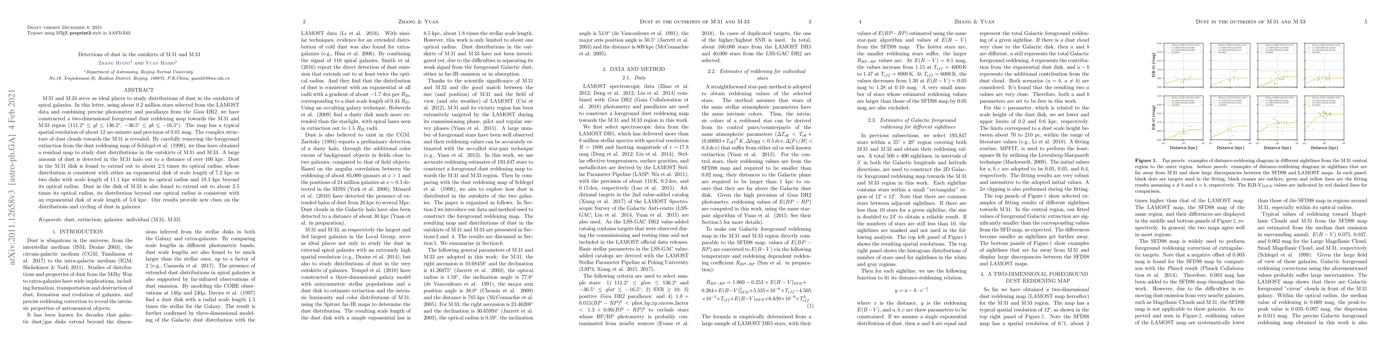 A study of dust distributions in the outskirts of spiral galaxies M31 and M33 reveals complex structures and large amounts of dust extending out to 100 kpc, providing new insights into galaxy evolution and dust cycling.