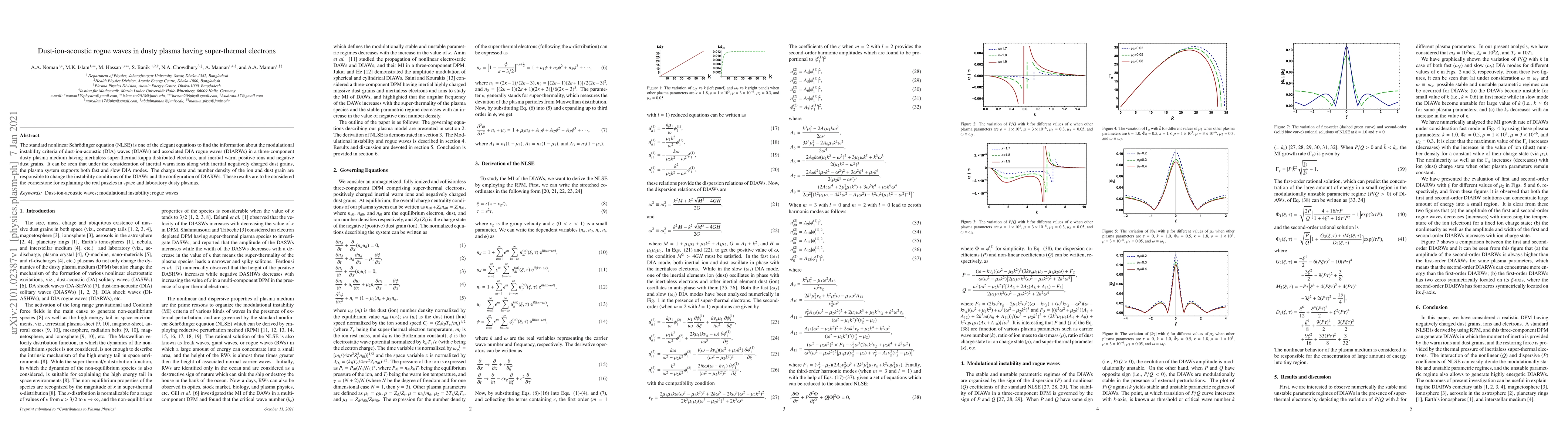This paper explores the modulational instability criteria for dust-ion-acoustic waves (DIAWs) in dusty plasmas with super-thermal electrons, using the nonlinear Schrödinger equation. It finds that the charge state and density of ions and dust grains influence the instability conditions and rogue wave configurations, providing insights into phenomena in space and laboratory dusty plasmas.