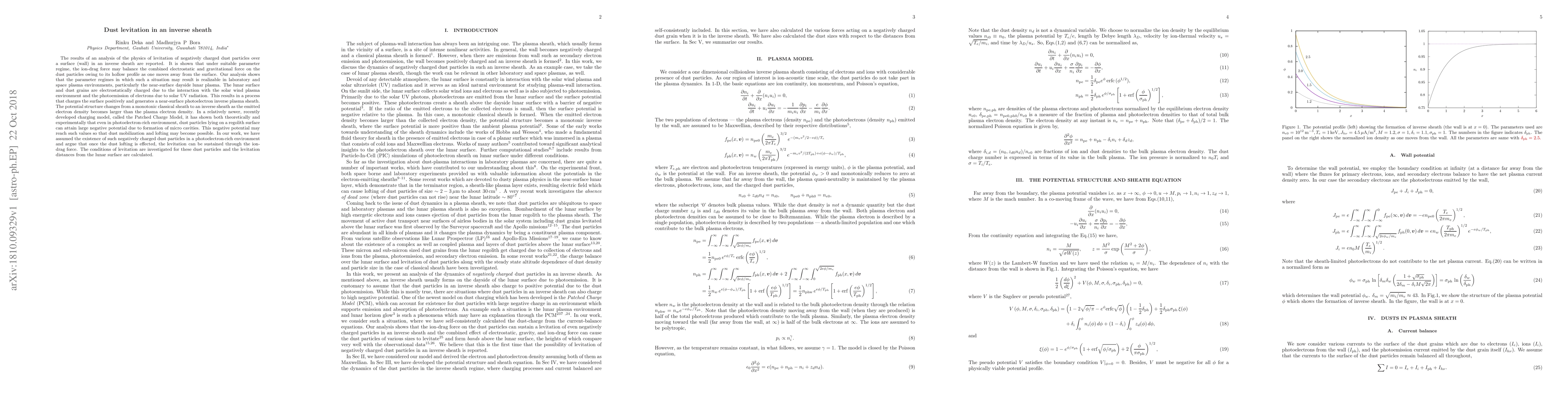 This paper analyzes the physics of levitation of negatively charged dust particles in an inverse sheath over a surface, showing that ion-drag force can balance electrostatic and gravitational forces. It concludes that such levitation conditions are feasible in laboratory and space plasma environments, particularly near the lunar surface, where photoelectron-rich environments can generate large negative potentials in dust grains, enabling their levitation.