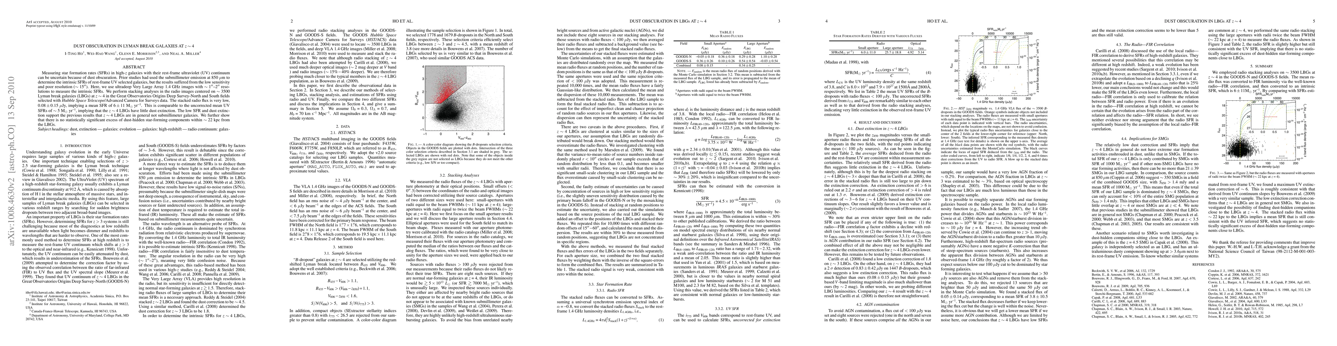 Measuring star formation rates (SFRs) in high-z galaxies with their rest-frame ultraviolet (UV) continuum can be uncertain because of dust obscuration. Prior studies had used the submillimeter emission at 850 um to determine the intrinsic SFRs of rest-frame UV selected galaxies, but the results suffered from the low sensitivity and poor resolution (~15''). Here, we use ultradeep Very Large Array 1.4 GHz images with ~1''-2'' resolutions to measure the intrinsic SFRs. We perform stacking analyses in the radio images centered on ~3500 Lyman break galaxies (LBGs) at z~4 in the Great Observatories Origins Deep Survey-North and South fields selected with Hubble Space Telescope/Advanced Camera for Surveys data. The stacked radio flux is very low, 0.08+/-0.15 uJy, implying a mean SFR of 6+/-11 M/yr. This is comparable to the uncorrected mean UV SFRs of 5 M/yr, implying that the z~4 LBGs have little dust extinction. The low SFR and dust extinction support the previous results that z~4 LBGs are in general not submillimeter galaxies. We further show that there is no statistically significant excess of dust-hidden star-forming components within ~22 kpc from the LBGs.