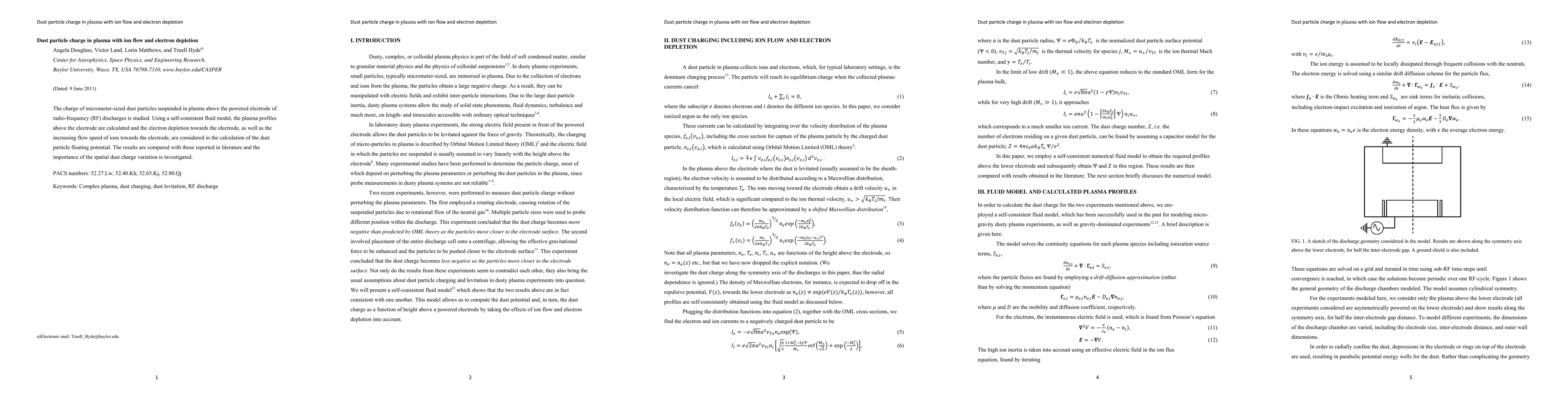 This study investigates the charge of dust particles in plasma above a powered electrode in RF discharges, employing a self-consistent fluid model to account for electron depletion and ion flow speed. The calculated dust particle floating potential is compared with literature, highlighting the significance of spatial dust charge variation.