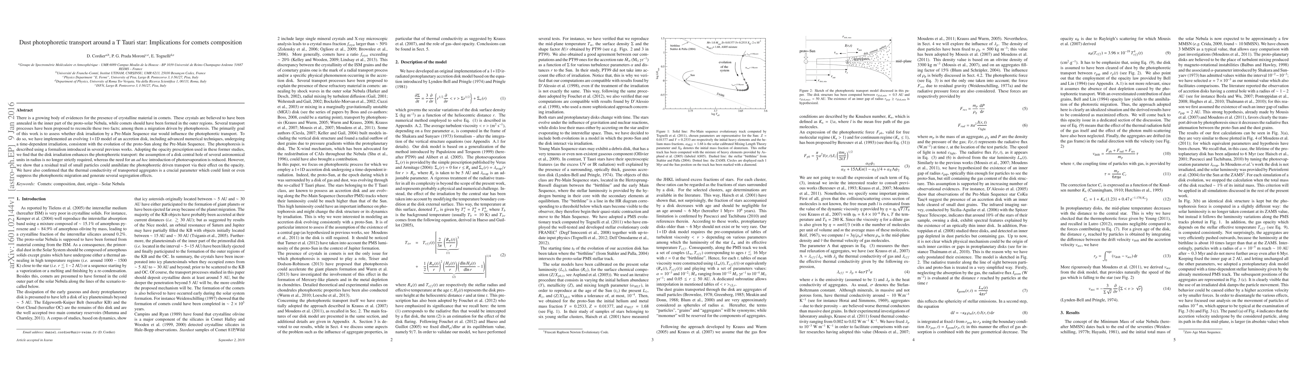 There is a growing body of evidences for the presence of crystalline material in comets. These crystals are believed to have been annealed in the inner part of the proto-solar nebula, while comets should have been formed in the outer regions. Several transport processes have been proposed to reconcile these two facts; among them a migration driven by photophoresis. The primarily goal of this work is to assess whether disk irradiation by a Pre-Main Sequence star would influence the photophoretic transport. To do so, we have implemented an evolving 1+1D model of an accretion disk, including advanced numerical techniques, undergoing a time-dependent irradiation, consistent with the evolution of the proto-Sun along the Pre-Main Sequence. The photophoresis is described using a formalism introduced in several previous works. Adopting the opacity prescription used in these former studies, we find that the disk irradiation enhances the photophoretic transport: the assumption of a disk central hole of several astronomical units in radius is no longer strictly required, whereas the need for an ad hoc introduction of photoevaporation is reduced. However, we show that a residual trail of small particles could annihilate the photophoretic driven transport via their effect on the opacity. We have also confirmed that the thermal conductivity of transported aggregates is a crucial parameter which could limit or even suppress the photophoretic migration and generate several segregation effects.