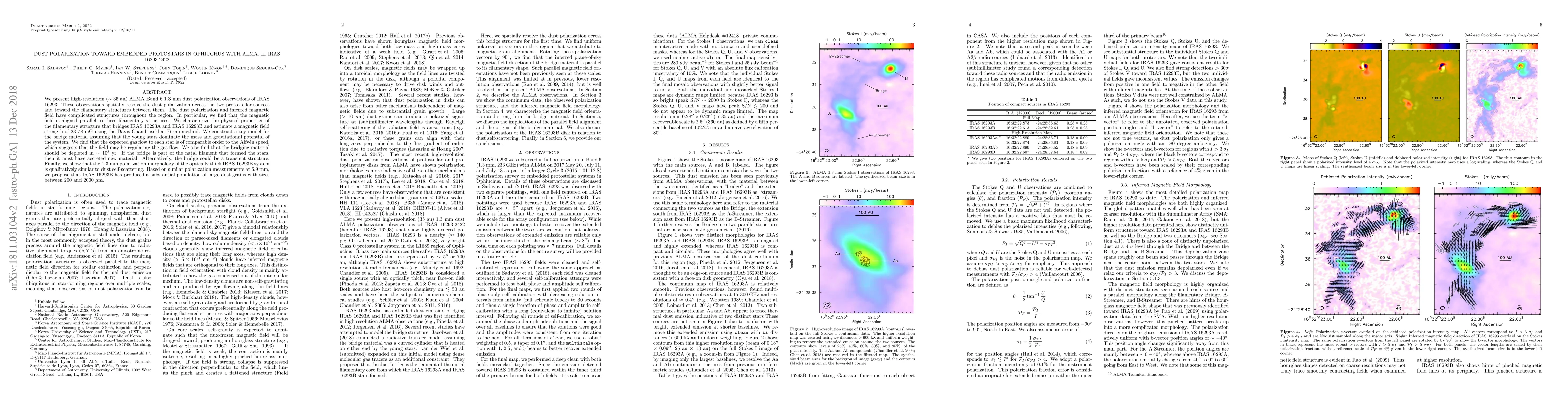 We present high-resolution (~ 35 au) ALMA Band 6 1.3 mm dust polarization observations of IRAS 16293. These observations spatially resolve the dust polarization across the two protostellar sources and toward the filamentary structures between them. The dust polarization and inferred magnetic field have complicated structures throughout the region. In particular, we find that the magnetic field is aligned parallel to three filamentary structures. We characterize the physical properties of the filamentary structure that bridges IRAS 16293A and IRAS 16293B and estimate a magnetic field strength of 23-78 mG using the Davis-Chandrasekhar-Fermi method. We construct a toy model for the bridge material assuming that the young stars dominate the mass and gravitational potential of the system. We find that the expected gas flow to each star is of comparable order to the Alfven speed, which suggests that the field may be regulating the gas flow. We also find that the bridging material should be depleted in ~ 1000 yr. If the bridge is part of the natal filament that formed the stars, then it must have accreted new material. Alternatively, the bridge could be a transient structure. Finally, we show that the 1.3 mm polarization morphology of the optically thick IRAS 16293B system is qualitatively similar to dust self-scattering. Based on similar polarization measurements at 6.9 mm, we propose that IRAS 16293B has produced a substantial population of large dust grains with sizes between 200 and 2000 um.