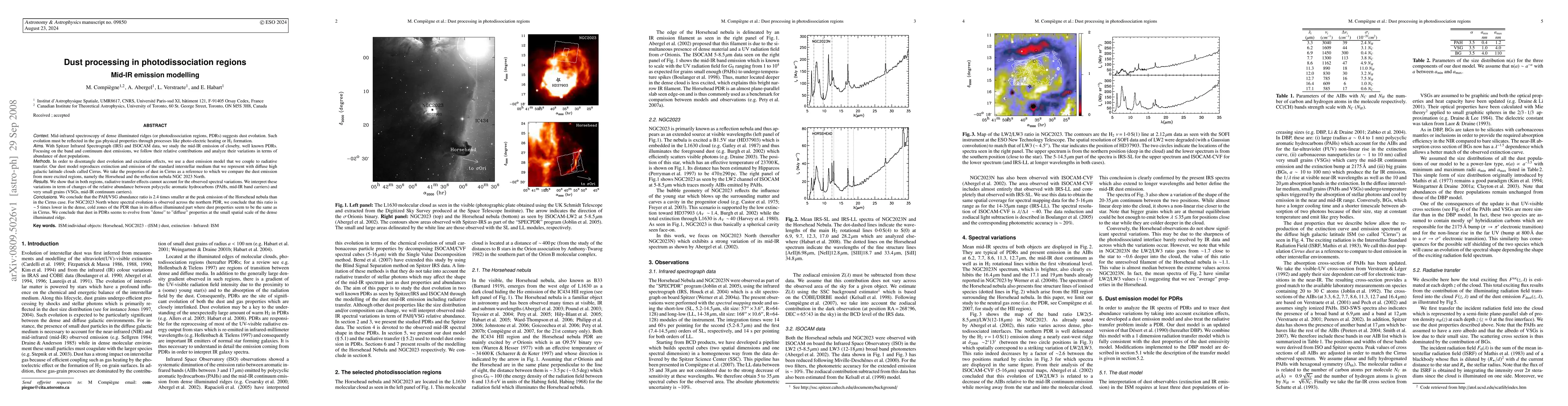 This paper models mid-IR dust emission in photodissociation regions (PDRs) to study the evolution of dust populations. It finds that the PAH/VSG abundance ratio significantly decreases in PDRs compared to diffuse clouds, indicating dust evolution from "dense" to "diffuse" properties.