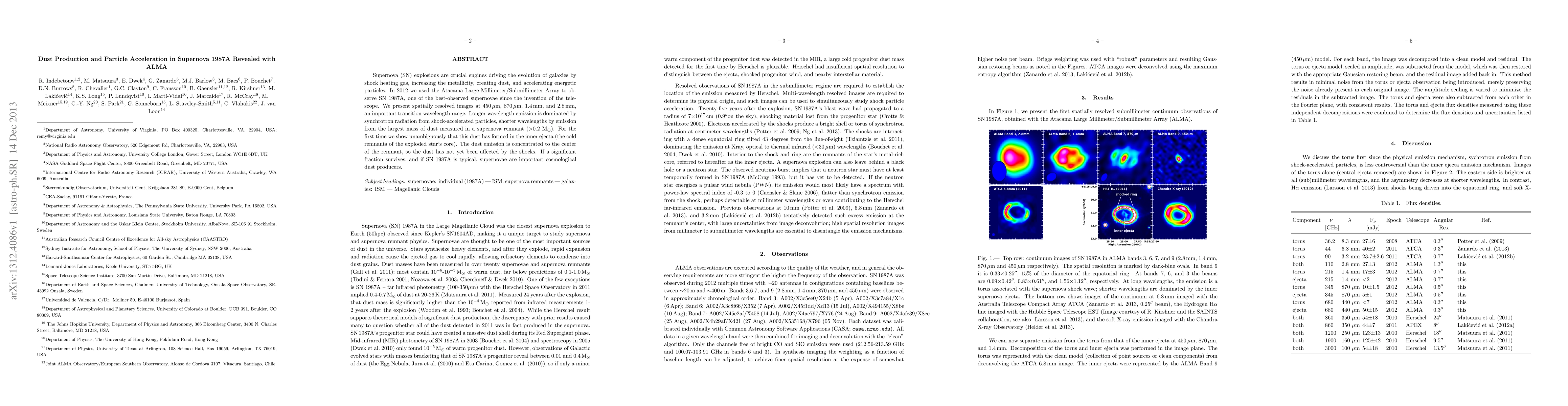 Supernova (SN) explosions are crucial engines driving the evolution of galaxies by shock heating gas, increasing the metallicity, creating dust, and accelerating energetic particles. In 2012 we used the Atacama Large Millimeter/Submillimeter Array to observe SN 1987A, one of the best-observed supernovae since the invention of the telescope. We present spatially resolved images at 450um, 870um, 1.4mm, and 2.8mm, an important transition wavelength range. Longer wavelength emission is dominated by synchrotron radiation from shock-accelerated particles, shorter wavelengths by emission from the largest mass of dust measured in a supernova remnant (>0.2Msun). For the first time we show unambiguously that this dust has formed in the inner ejecta (the cold remnants of the exploded star's core). The dust emission is concentrated to the center of the remnant, so the dust has not yet been affected by the shocks. If a significant fraction survives, and if SN 1987A is typical, supernovae are important cosmological dust producers.