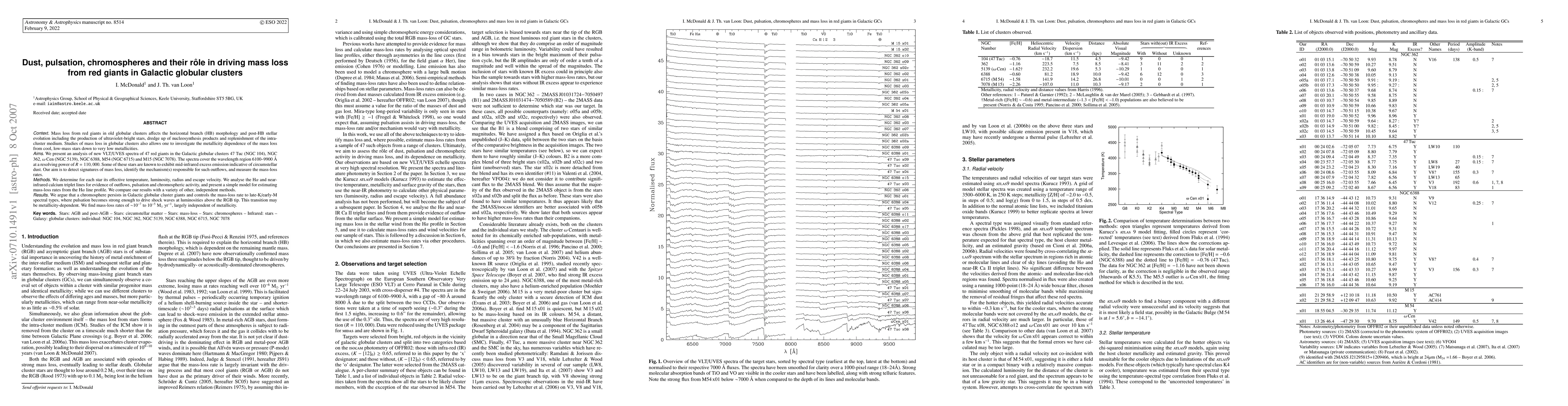 This paper analyzes VLT/UVES spectra of red giants in six Galactic globular clusters to determine the mechanisms driving mass loss. It finds that chromospheric activity and pulsation, particularly at high luminosities, are key drivers of mass loss, with rates ranging from ~10^-7 to 10^-5 solar masses per year, largely unaffected by metallicity.