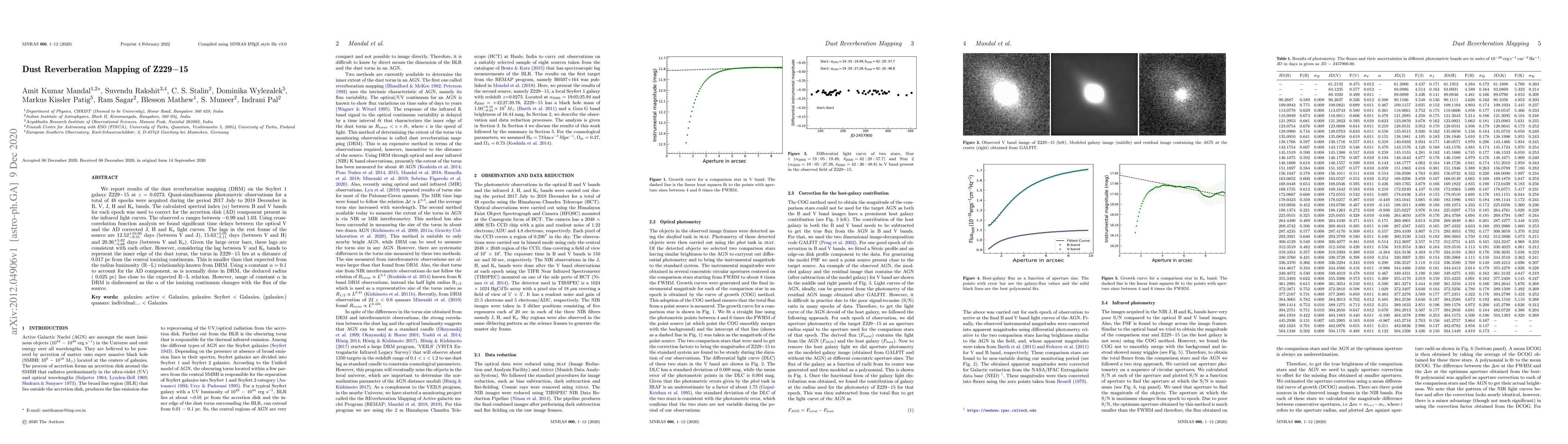 Researchers mapped dust reverberation in a Seyfert 1 galaxy, Z229-15, finding the torus lies at 0.017 pc from the central ionizing continuum, contradicting expectations.