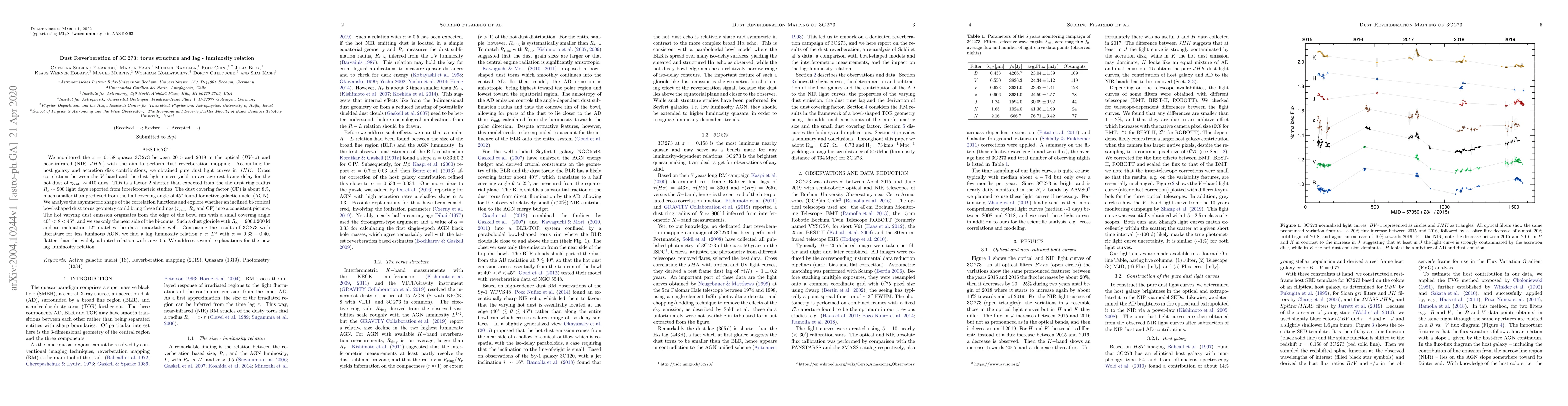 Researchers monitored quasar 3C273 to map dust reverberation, finding a shorter delay than expected and a smaller dust covering factor than predicted, with data suggesting a bi-conical bowl-shaped dust torus geometry.