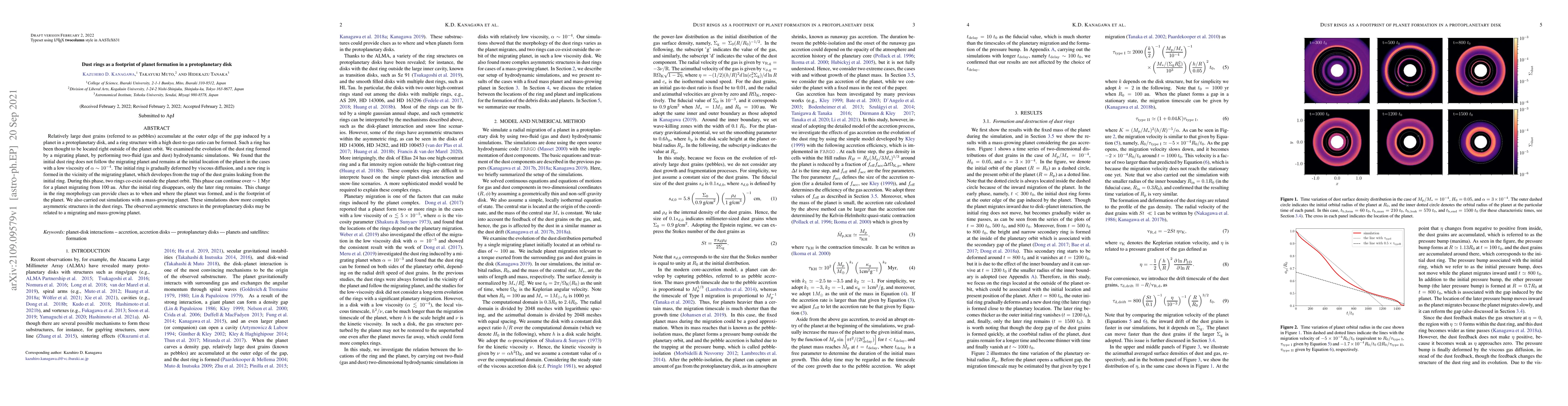 This paper investigates the formation and evolution of dust rings in protoplanetary disks due to planet migration, using hydrodynamic simulations. It finds that initial dust rings do not follow migrating planets and instead remain at the planet's initial location, while new rings form near the migrating planet, providing clues about planet formation history.