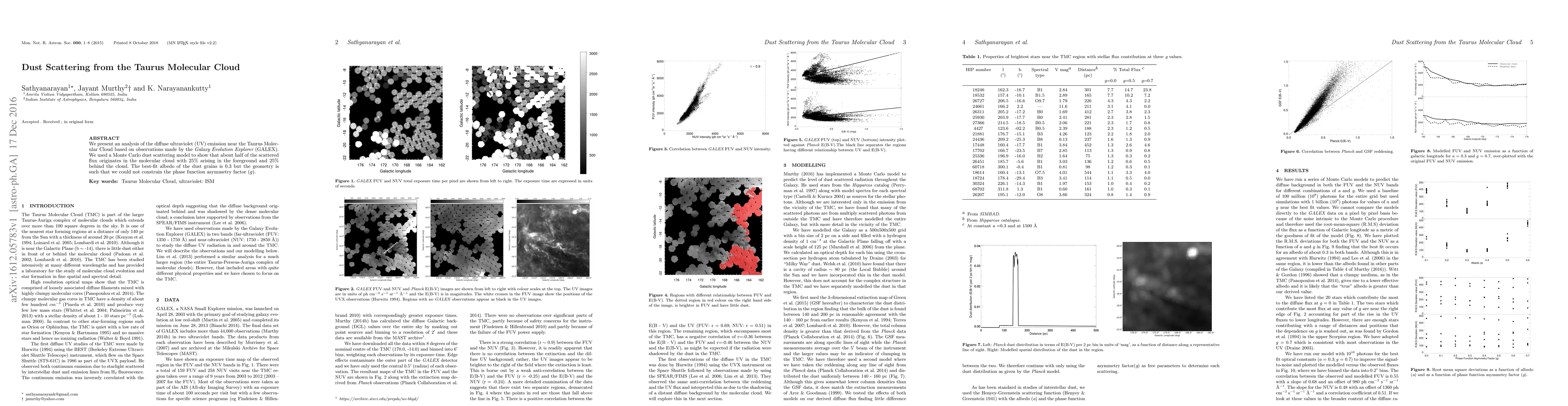 This study analyzes UV emission near the Taurus Molecular Cloud using GALEX data, revealing that half of the scattered flux originates from the cloud itself, with the remaining split between foreground and background sources. The best-fit dust albedo is 0.3, but the phase function asymmetry factor remains unconstrained due to geometric limitations.