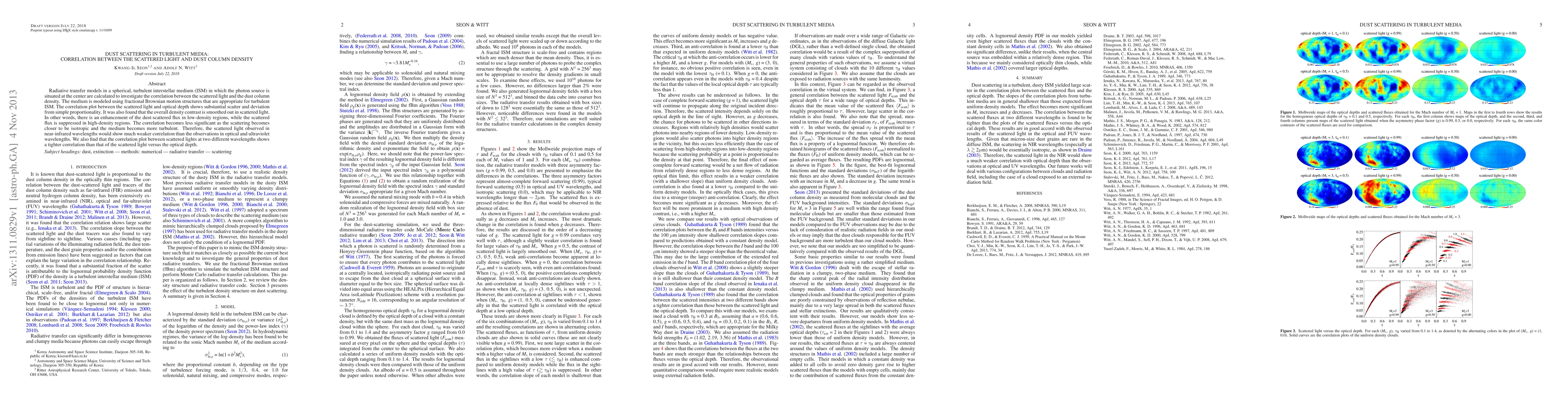 Radiative transfer models in a spherical, turbulent interstellar medium (ISM) in which the photon source is situated at the center are calculated to investigate the correlation between the scattered light and the dust column density. The medium is modeled using fractional Brownian motion structures that are appropriate for turbulent ISM. The correlation plot between the scattered light and optical depth shows substantial scatter and deviation from simple proportionality. It was also found that the overall density contrast is smoothed out in scattered light. In other words, there is an enhancement of the dust-scattered flux in low-density regions, while the scattered flux is suppressed in high-density regions. The correlation becomes less significant as the scattering becomes closer to be isotropic and the medium becomes more turbulent. Therefore, the scattered light observed in near-infrared wavelengths would show much weaker correlation than the observations in optical and ultraviolet wavelengths. We also find that the correlation plot between scattered lights at two different wavelengths shows a tighter correlation than that of the scattered light versus the optical depth.