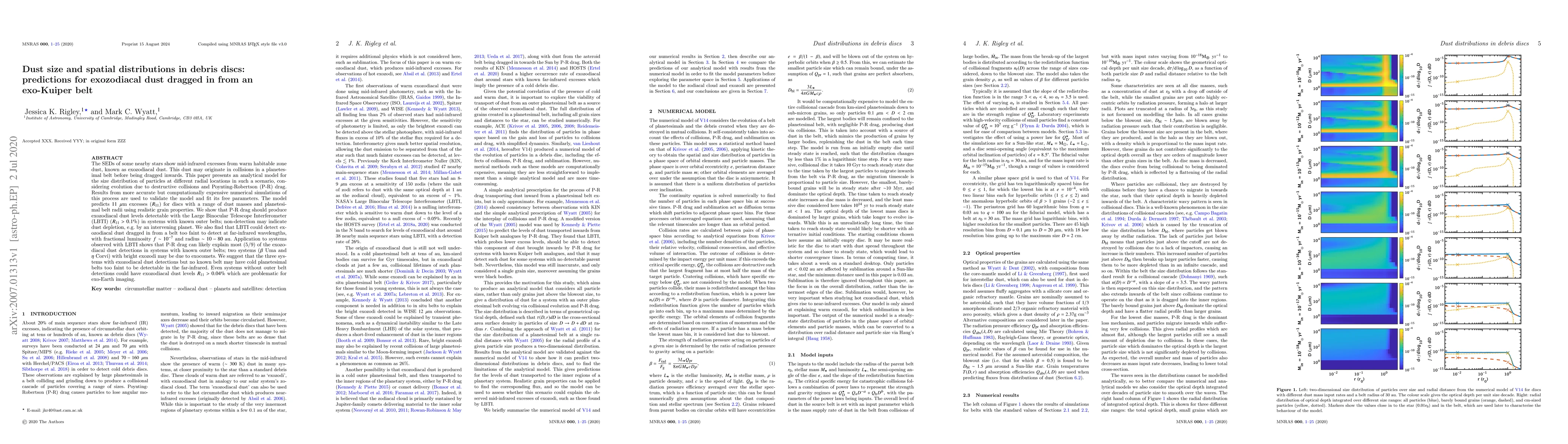 This paper develops an analytical model to predict the size distribution and spatial distribution of exozodiacal dust in debris discs, considering destructive collisions and Poynting-Robertson drag. The model predicts detectable levels of exozodiacal dust in systems with known outer belts, suggesting that non-detection may indicate dust depletion by an intervening planet.