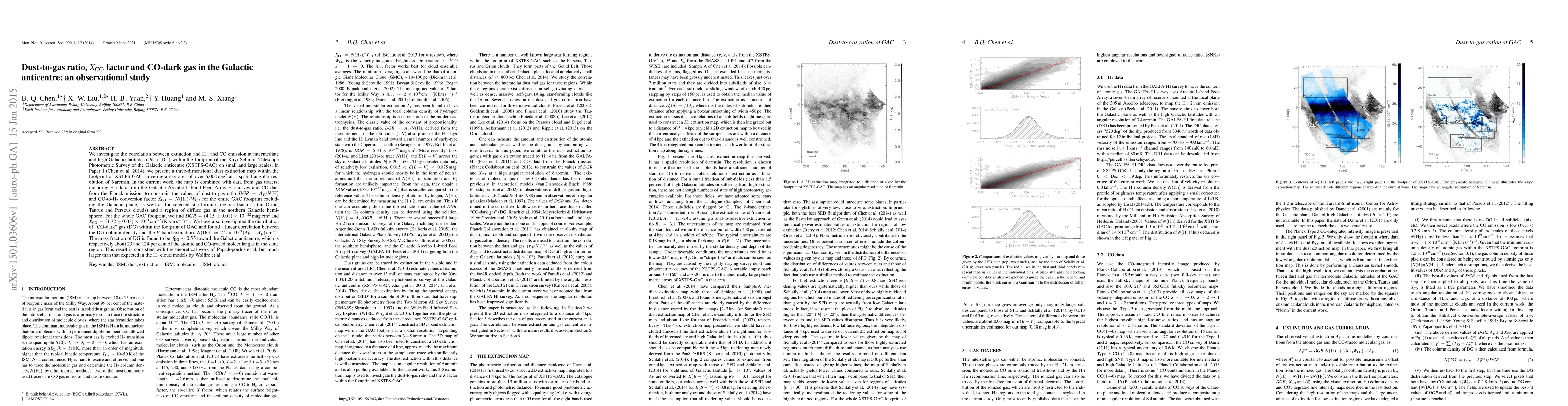 Researchers analyzed dust extinction and gas emission in the Galactic anticentre, finding a correlation between CO-dark gas and V-band extinction, with 55% of molecular gas being 'dark' gas.