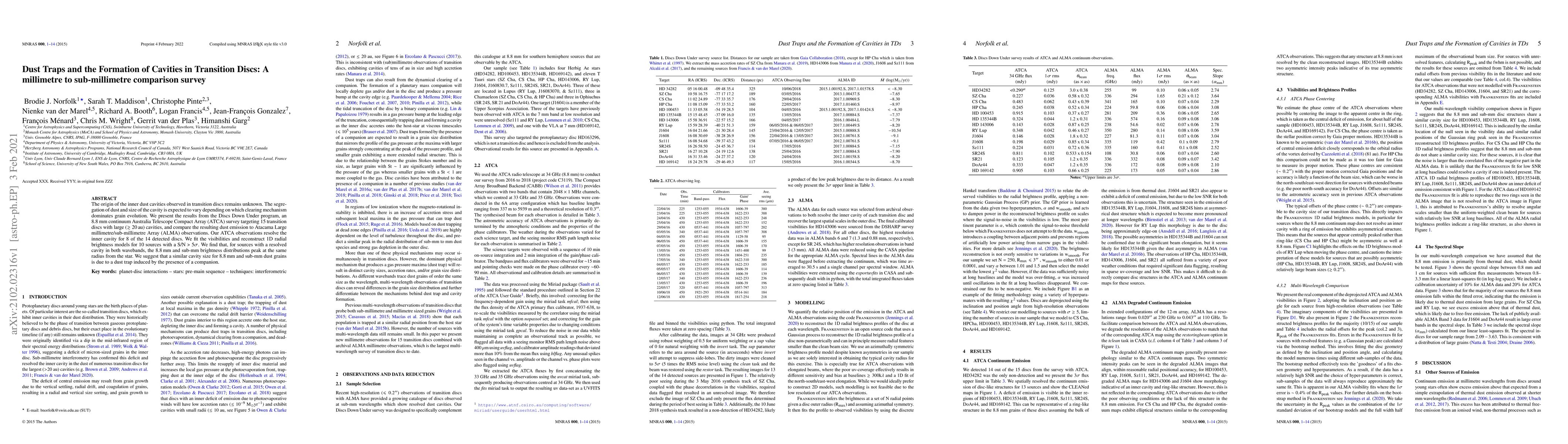 This study investigates the formation of inner dust cavities in transition discs using ATCA and ALMA observations, finding that the brightness distributions peak at the same radius for both 8.8 mm and sub-mm grains, suggesting a dust trap mechanism likely caused by a companion star.