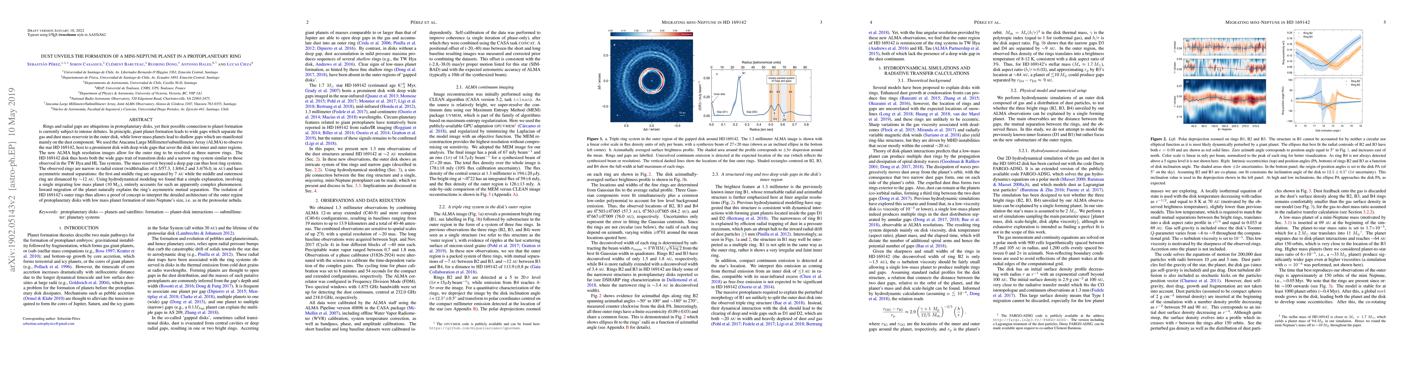 This research uses ALMA observations to reveal three narrow rings in the protoplanetary disk around HD169142, suggesting the formation of a mini-Neptune planet. Hydrodynamical modeling indicates a single migrating low-mass planet (10 Earth masses) explains the rings' formation and asymmetric separation.