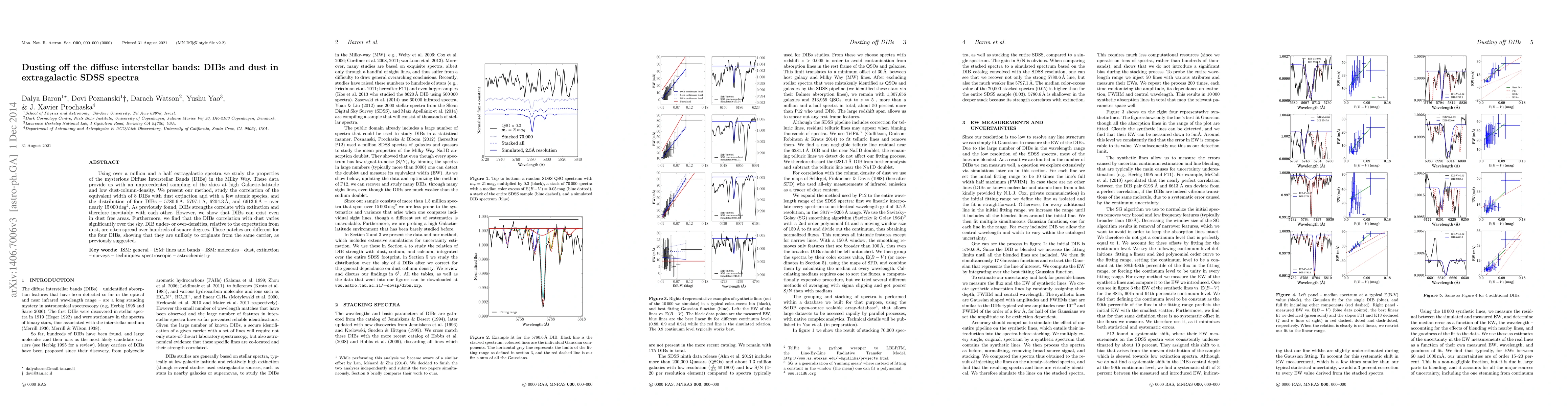 Using over a million and a half extragalactic spectra we study the properties of the mysterious Diffuse Interstellar Bands (DIBs) in the Milky Way. These data provide us with an unprecedented sampling of the skies at high Galactic-latitude and low dust-column-density. We present our method, study the correlation of the equivalent width of 8 DIBs with dust extinction and with a few atomic species, and the distribution of four DIBs - 5780.6A, 5797.1A, 6204.3A, and 6613.6A - over nearly 15000 squared degrees. As previously found, DIBs strengths correlate with extinction and therefore inevitably with each other. However, we show that DIBs can exist even in dust free areas. Furthermore, we find that the DIBs correlation with dust varies significantly over the sky. DIB under- or over-densities, relative to the expectation from dust, are often spread over hundreds of square degrees. These patches are different for the four DIBs, showing that they are unlikely to originate from the same carrier, as previously suggested.