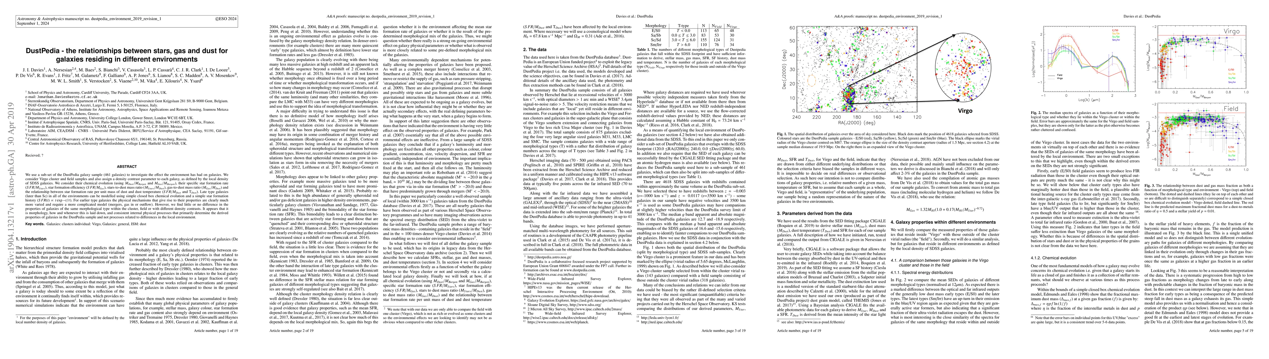 DustPedia investigates the relationships between stars, gas, and dust in 461 galaxies across different environments, finding that morphology, rather than local environmental factors, primarily determines galaxy properties. Despite examining various chemical and star formation metrics, no significant differences in galaxy properties were found between cluster, field, or density contrast environments.
