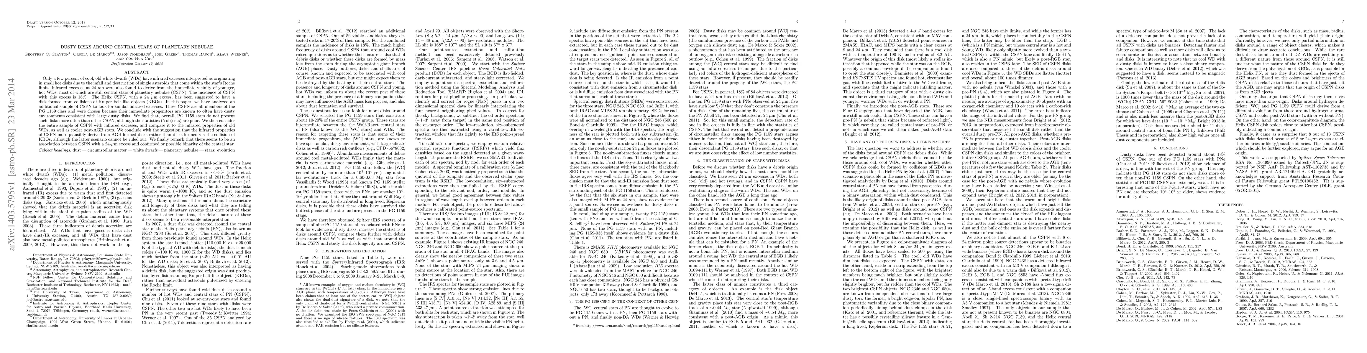 A study of planetary nebulae stars found that only 18% have infrared excesses from small hot disks, and these disks likely formed from collisions of Kuiper belt-like objects or AGB-formed material.
