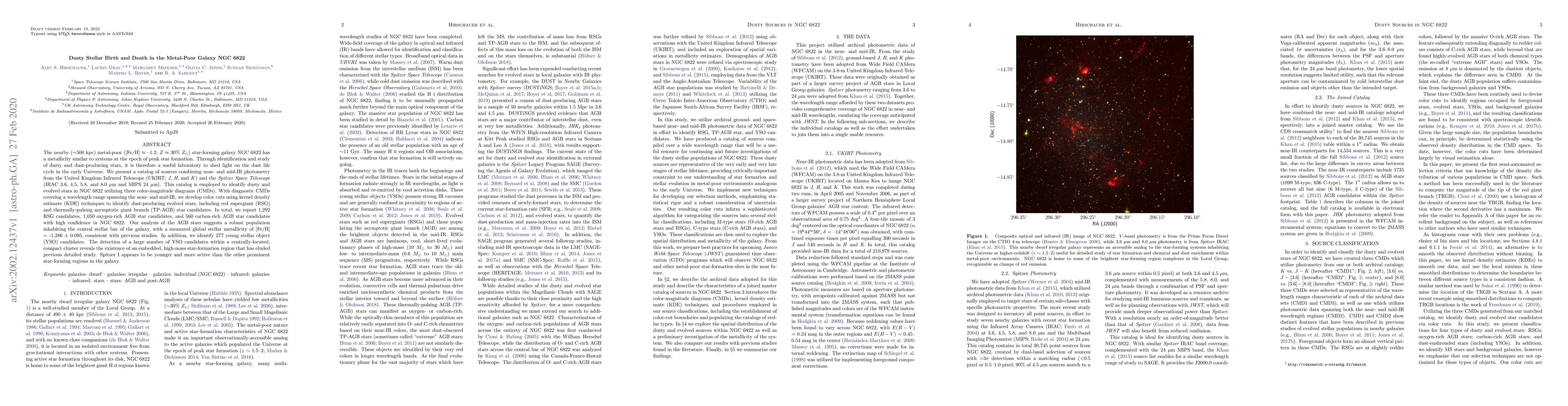 A study of the galaxy NGC 6822 reveals a large number of dusty stars, including red supergiant and asymptotic giant branch candidates, indicating a robust population of evolved stars with metallicity similar to the epoch of peak star formation. The detection of young stellar object candidates suggests an embedded high-mass star-formation region.