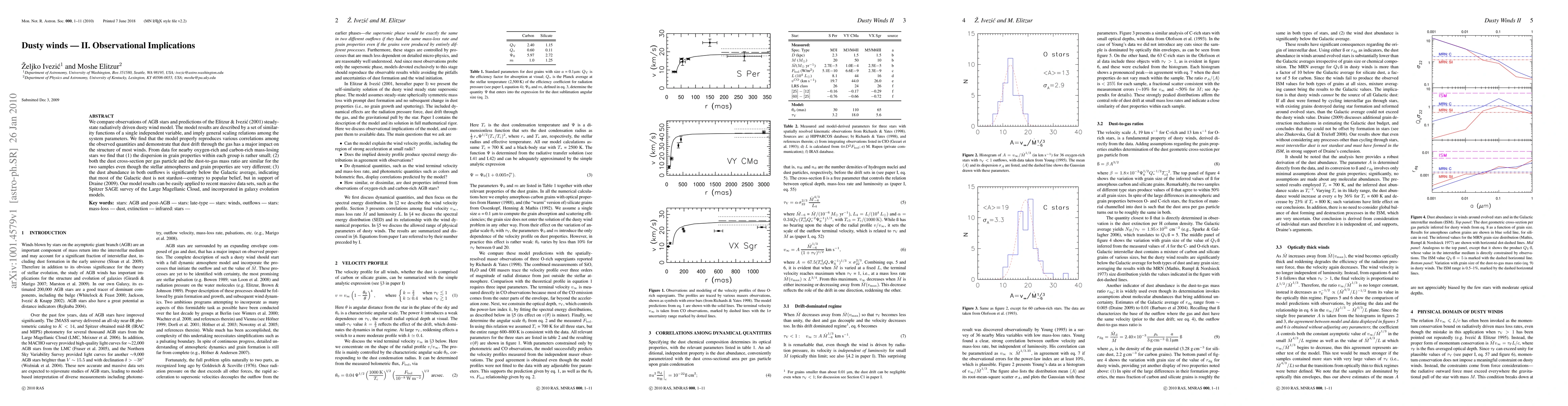 The paper compares AGB star observations with the Elitzur & Ivezic dusty wind model, finding small grain property dispersion and similar dust quantities in oxygen-rich and carbon-rich winds, both below Galactic average. This supports the idea that most Galactic dust isn't stardust.