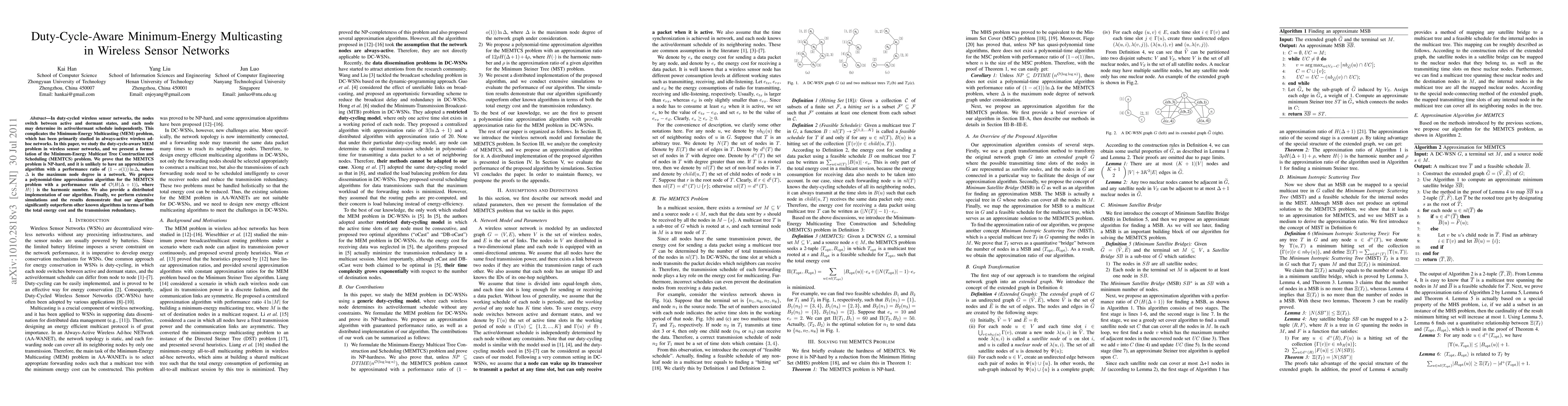 This paper addresses the Minimum-Energy Multicasting (MEM) problem in duty-cycled wireless sensor networks, presenting a polynomial-time approximation algorithm for constructing and scheduling multicast trees. The proposed algorithm significantly outperforms existing methods in terms of energy efficiency and transmission redundancy.