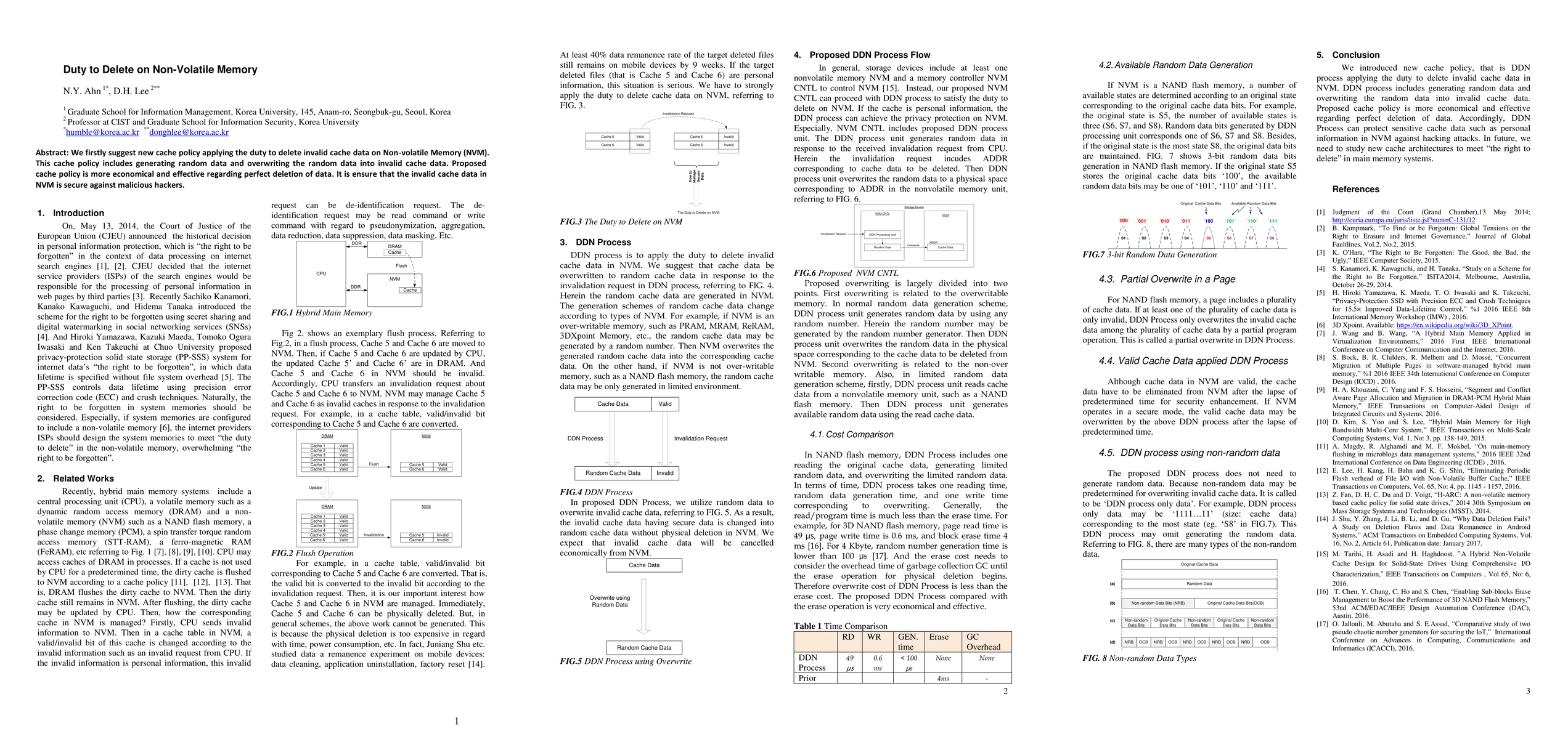 Summary: This paper introduces a new cache policy for Non-volatile Memory (NVM) that enforces the duty to delete invalid cache data by overwriting it with random data, ensuring secure and economical perfect data deletion to protect against malicious hackers.