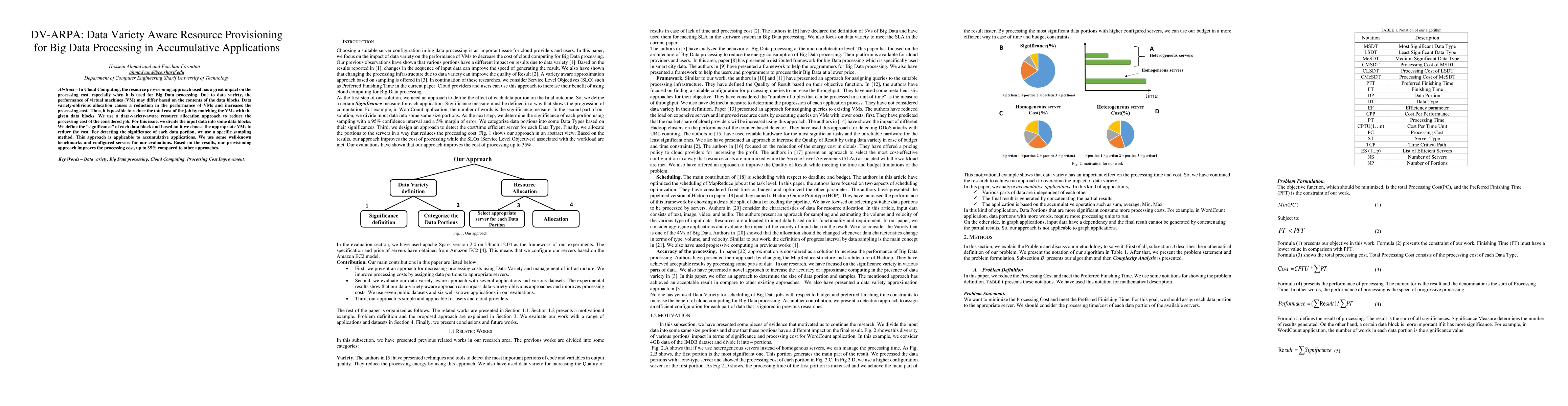 In Cloud Computing, the resource provisioning approach used has a great impact on the processing cost, especially when it is used for Big Data processing. Due to data variety, the performance of virtual machines (VM) may differ based on the contents of the data blocks. Data variety-oblivious allocation causes a reduction in the performance of VMs and increases the processing cost. Thus, it is possible to reduce the total cost of the job by matching the VMs with the given data blocks. We use a data-variety-aware resource allocation approach to reduce the processing cost of the considered job. For this issue, we divide the input data into some data blocks. We define the significance of each data block and based on it we choose the appropriate VMs to reduce the cost. For detecting the significance of each data portion, we use a specific sampling method. This approach is applicable to accumulative applications. We use some well-known benchmarks and configured servers for our evaluations. Based on the results, our provisioning approach improves the processing cost, up to 35% compared to other approaches.