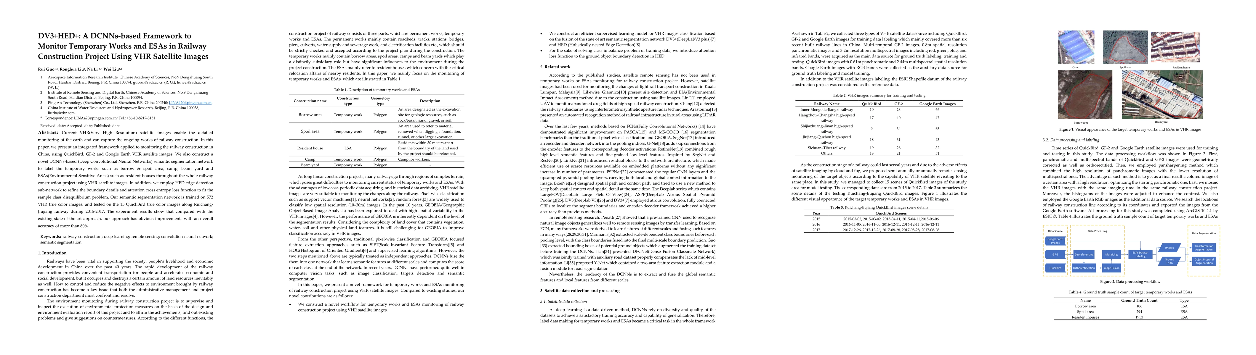 This paper presents a deep learning-based framework for monitoring temporary works and environmental sensitive areas in railway construction using high-resolution satellite images, achieving an accuracy of over 80%.