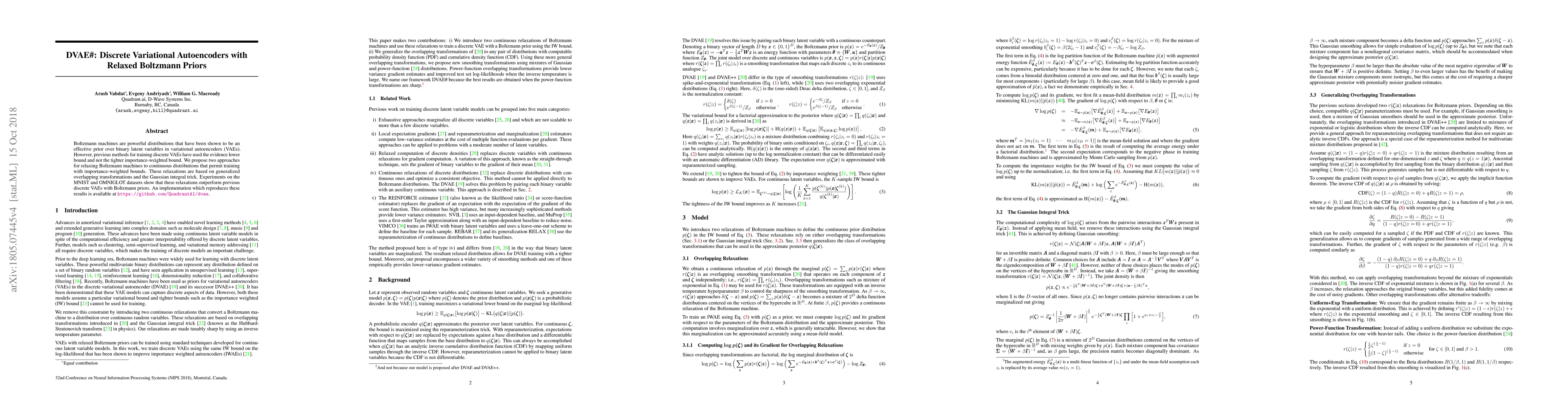This paper proposes two methods to relax Boltzmann machines in discrete variational autoencoders (DVAEs) using importance-weighted bounds, based on generalized transformations and the Gaussian integral trick. Experiments on MNIST and OMNIGLOT datasets demonstrate superior performance compared to previous discrete VAEs.