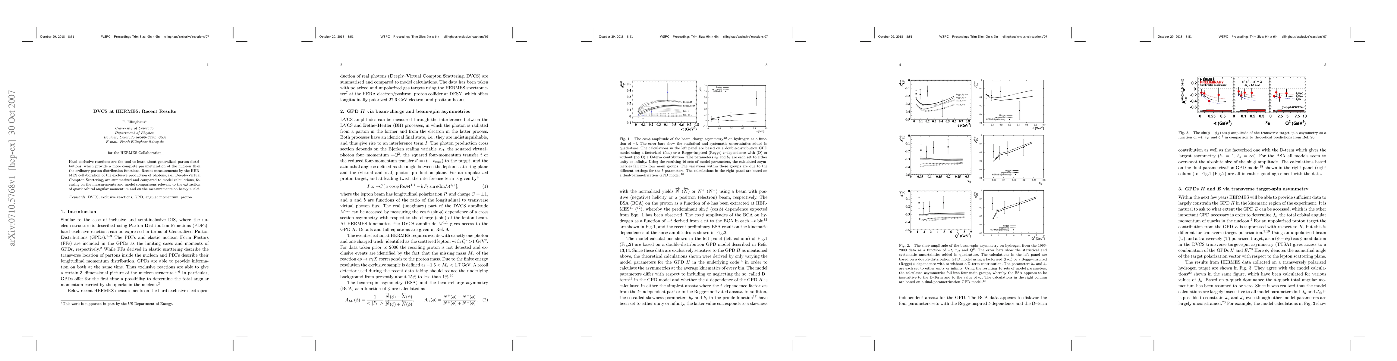 Summary: The HERMES collaboration reports on recent measurements of Deeply-Virtual Compton Scattering to study generalized parton distributions, emphasizing the extraction of quark orbital angular momentum and results from heavy nuclei, compared to model predictions.
